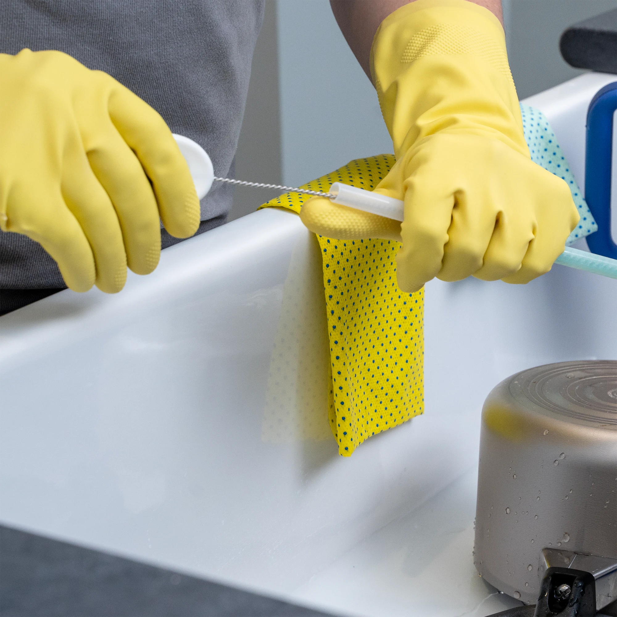 Protect your hands against animal fats, vegetable oils, mild acids, detergents, and alcohols with the All-Purpose Reusable Latex Gloves. The absorbent cotton flock lining wicks away sweat, enhancing your control and comfort while in use. Designed for maximum comfort, the optimized fit helps prevent hand fatigue while worn.