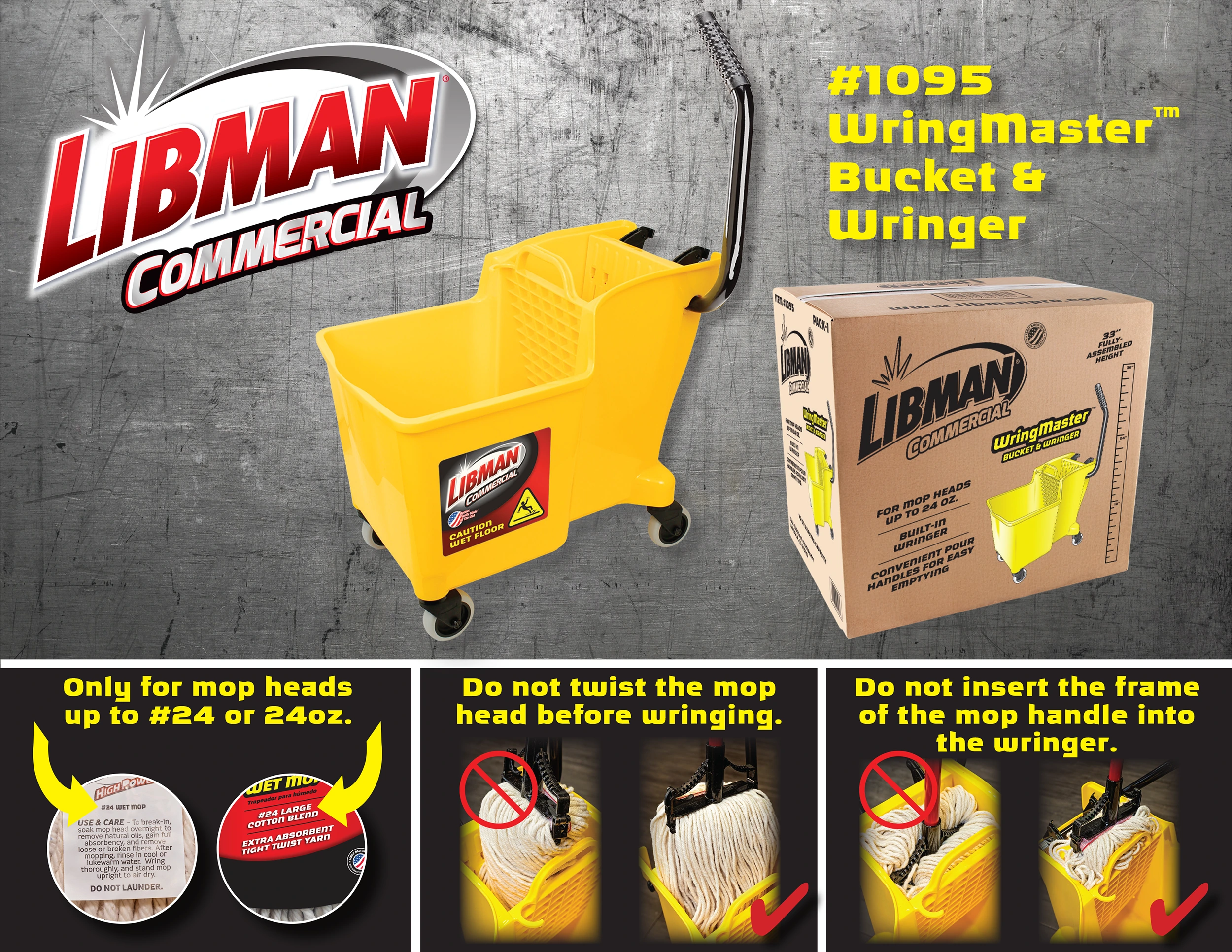 Le seau et l’essoreuse en une seule pièce sont composés d’un seau commercial de 30,3 l (32 chopines) et d’une essoreuse intégrée. Ils sont robustes et durables.