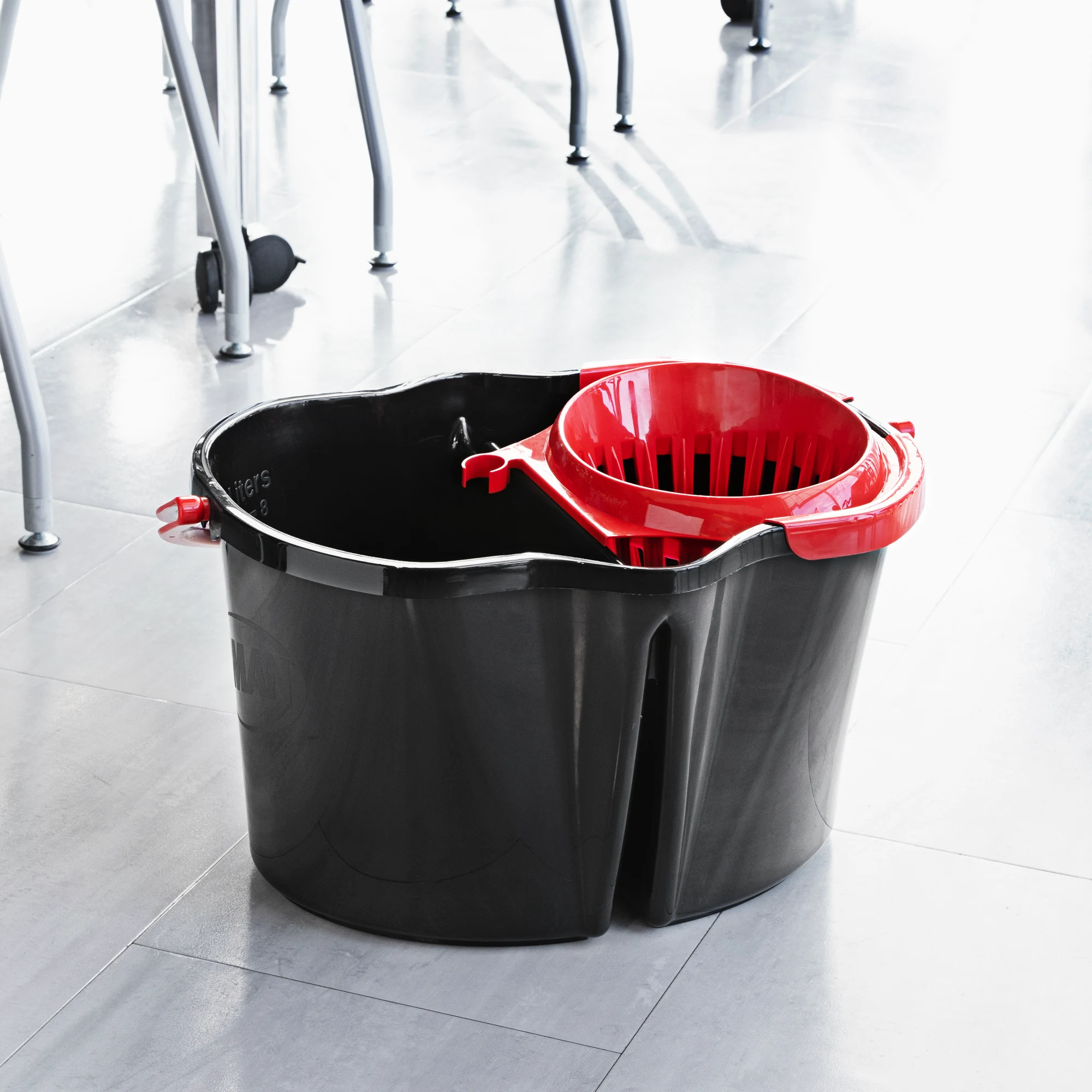 The 4-Gallon Bucket with Wringer is a 4-gallon dual-sided bucket with a wringer add-on. It’s excellent for all mop types.