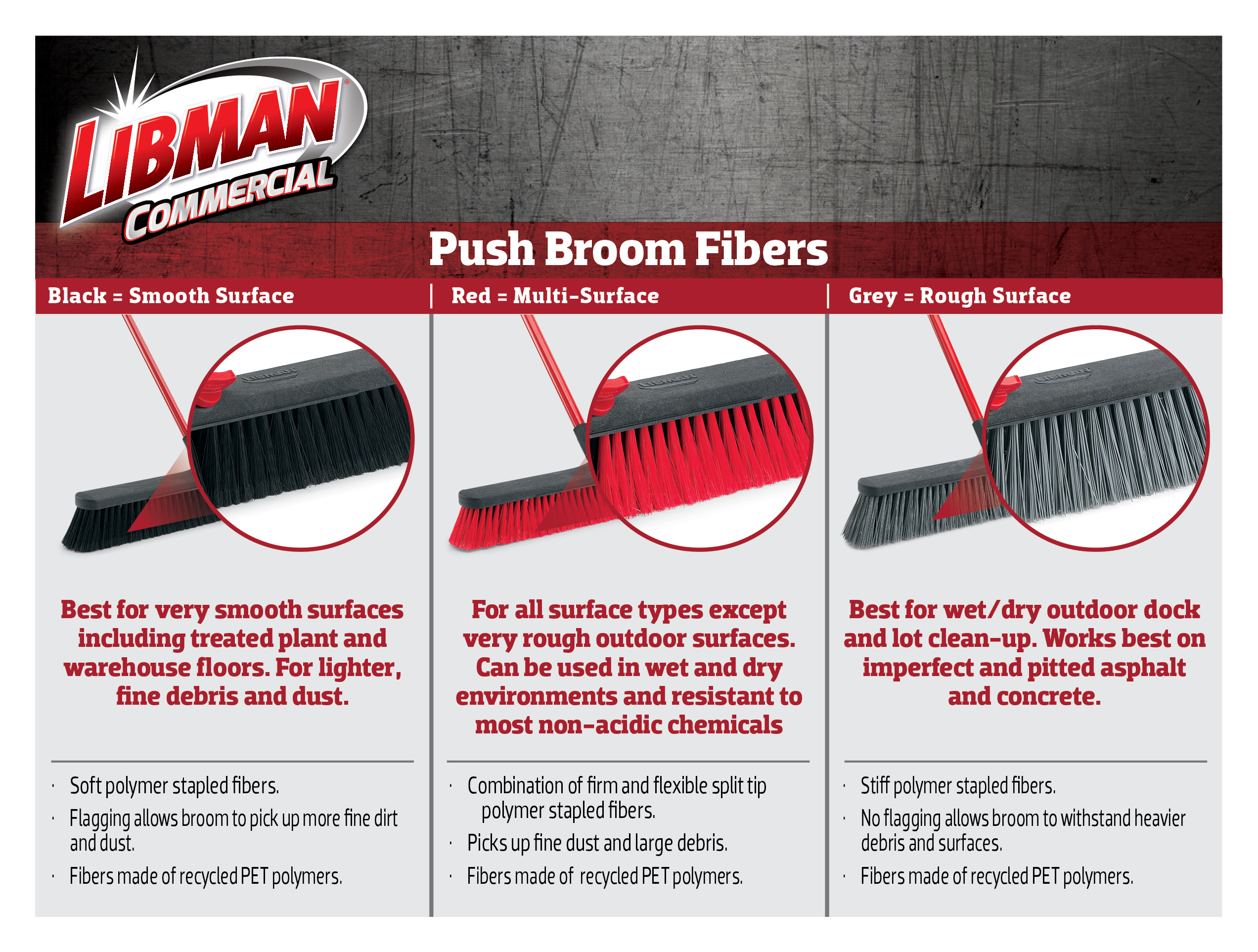 The Multi-Surface Commercial Push Broom is a 24” multi-surface push broom for heavy-duty and contractor use. The environmentally friendly broom fibres are made from recycled water bottles.