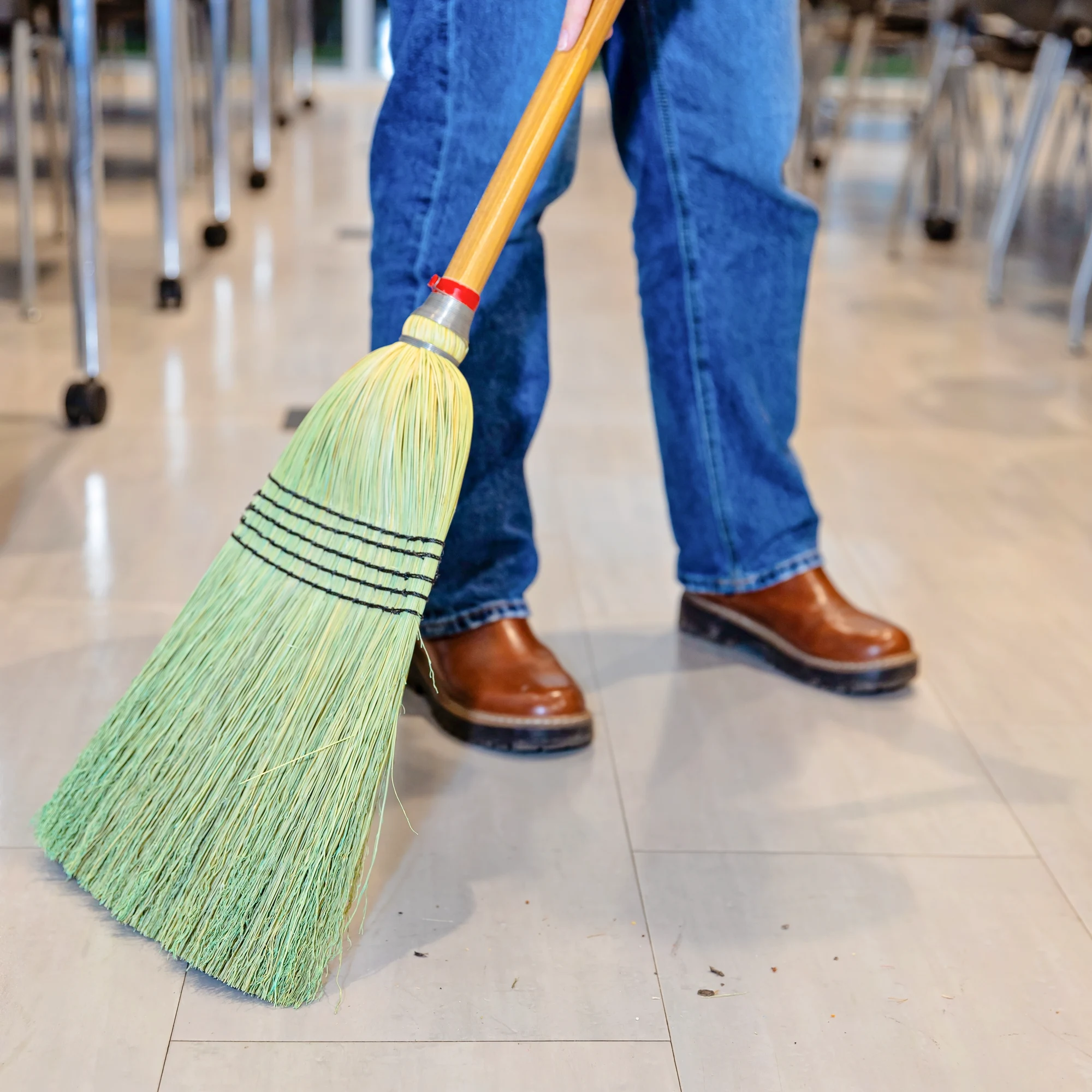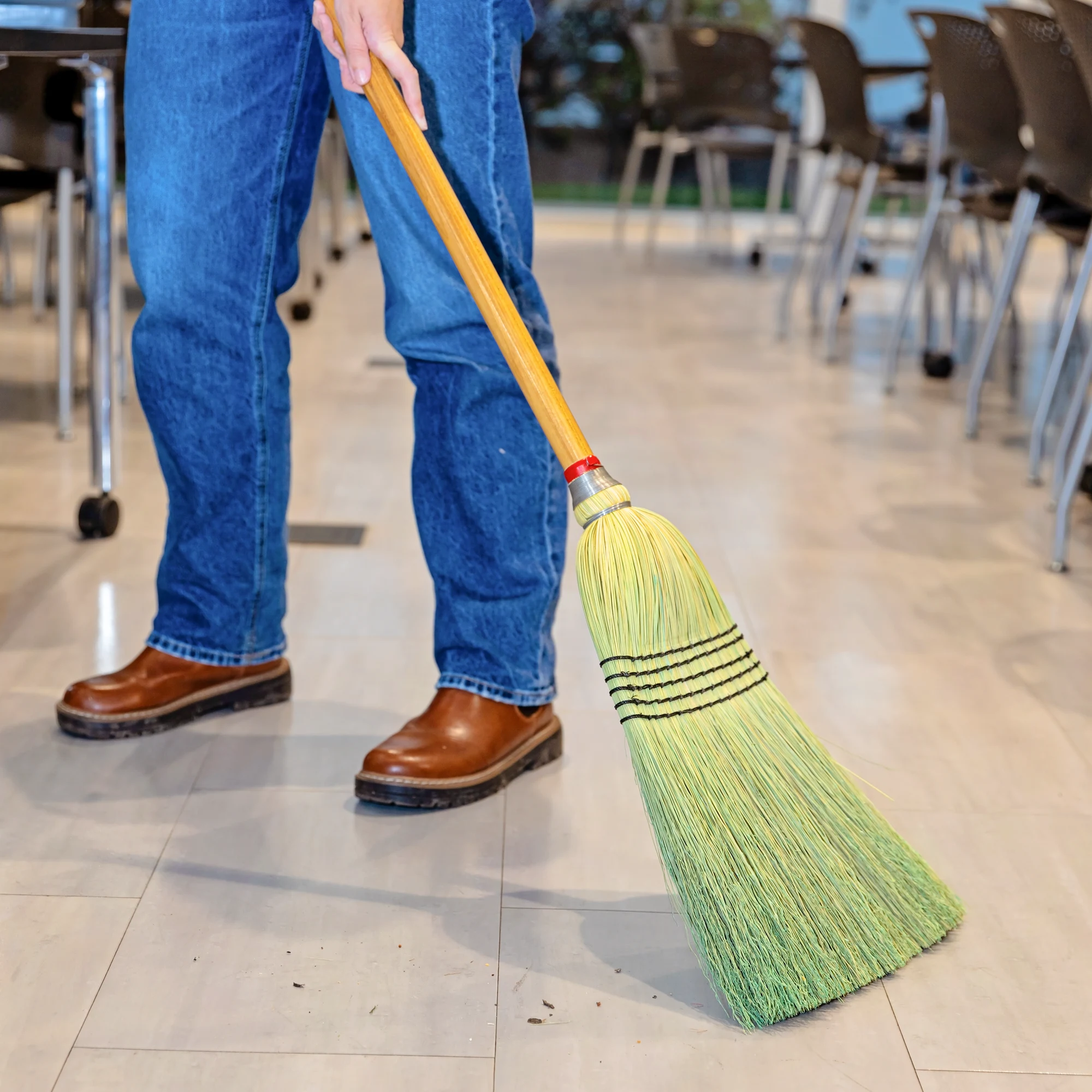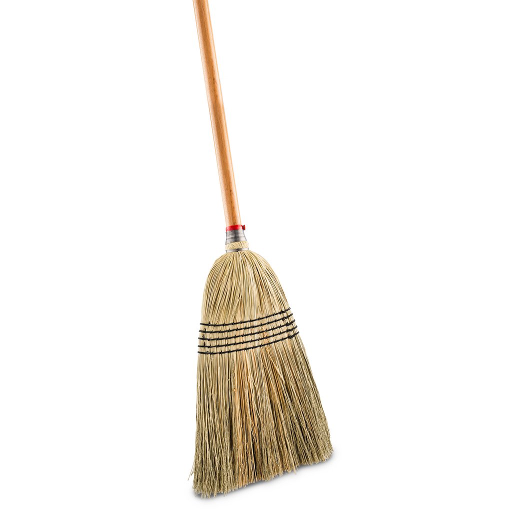 The Big Corn Broom with Wood Handle is built to last by using 100% natural broom corn. By utilizing pure broom corn and no filler grasses, the broom will not rot and fall apart if exposed to moisture. The large broom head maintains its shape well for a long life with the help of 5 rows of stitching. It's strong, 1-1/8” thick wooden handle is also a key to any tough outdoor sweeping needs.