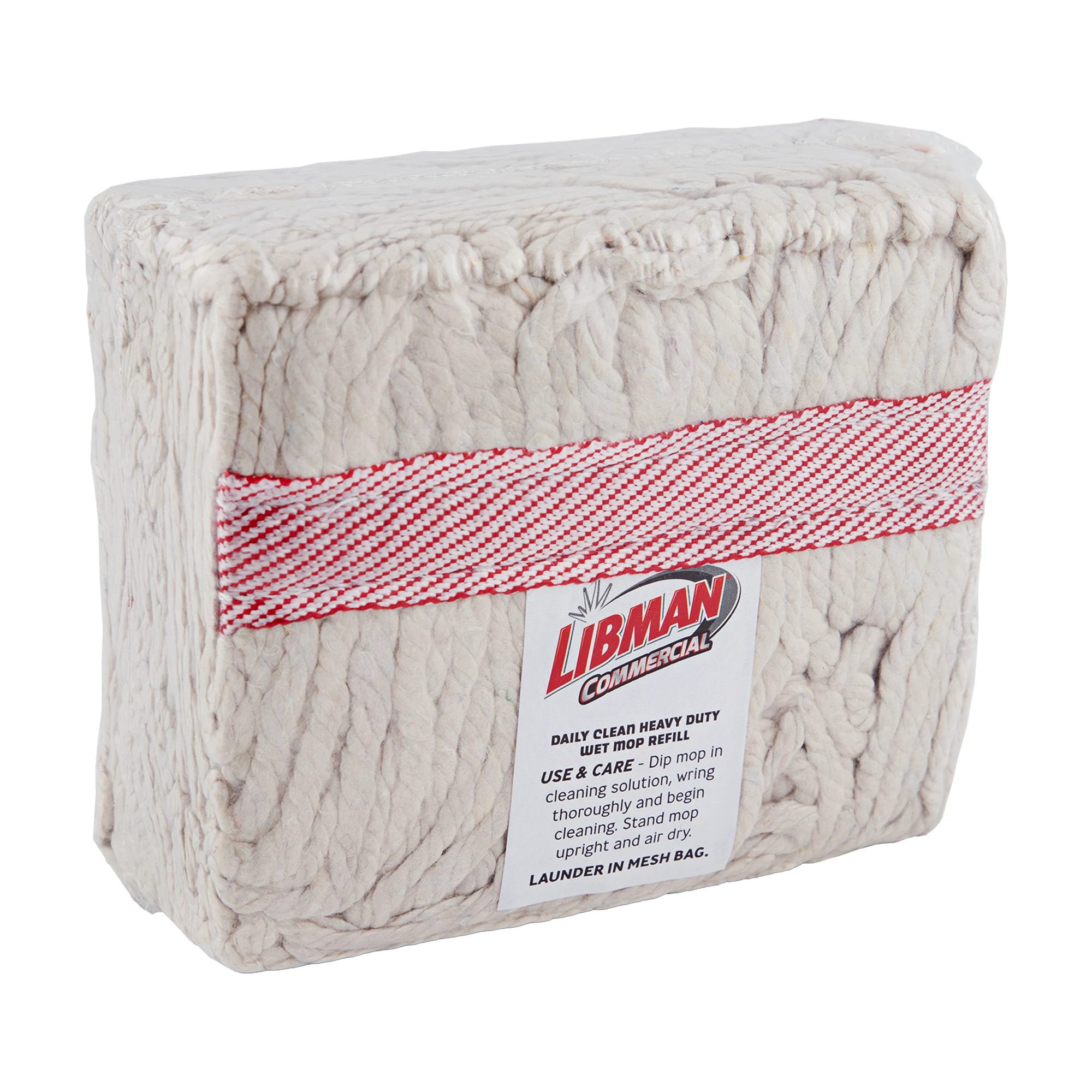 Break-in by soaking overnight. Ideal for general floor cleaning. Cotton provides excellent absorbency. Long fibers provide maximum efficiency to shorten cleaning time. Considered the highest quality, best value style. Has up to 8 times longer life and does a much better job in shorter time, reducing labor by as much as 50%.