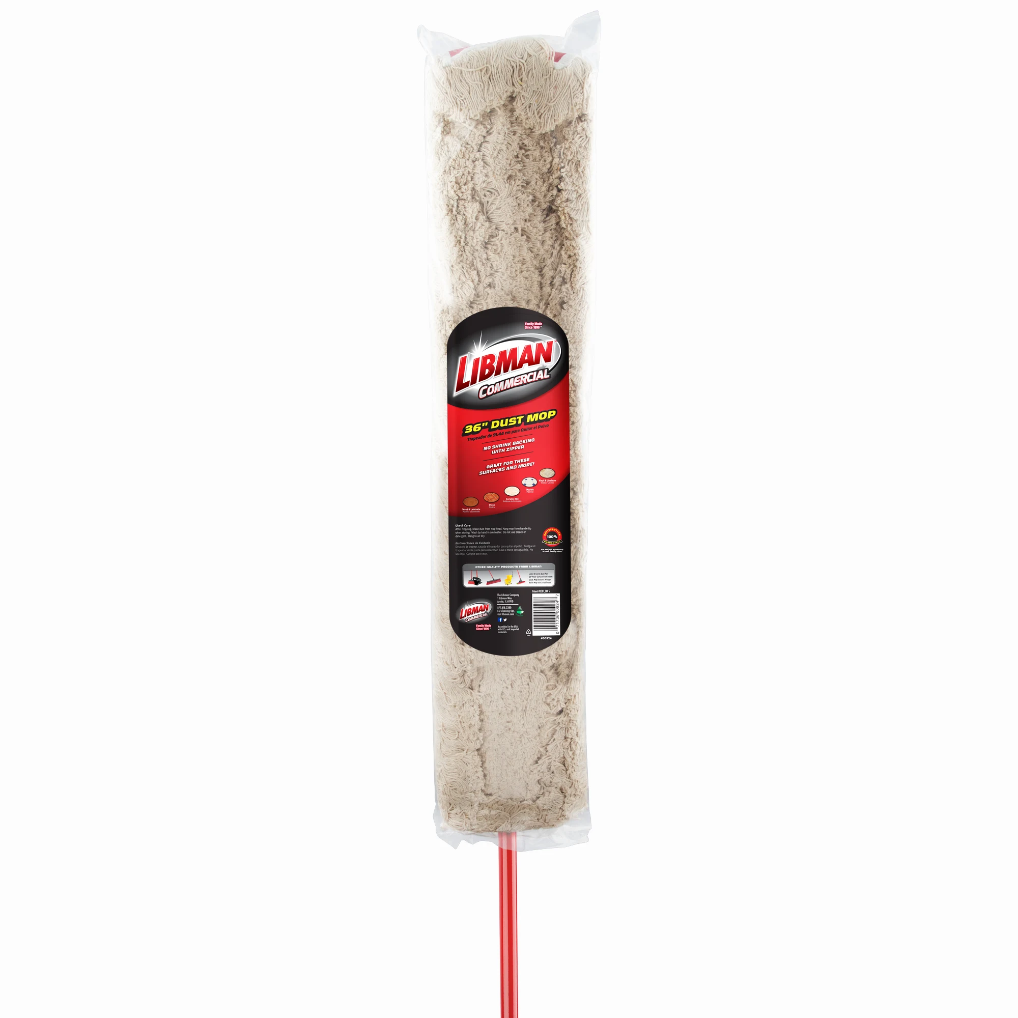 For wide commercial spaces that require large-scale dusting, use the 36” Dust Mop to clear away all debris. The cotton-blend dust mop head swivels 360° to help reach tough spots. The set comes with a 1” x 63” steel handle that resists chipping and is equipped with a hanger hole for convenient storage.
