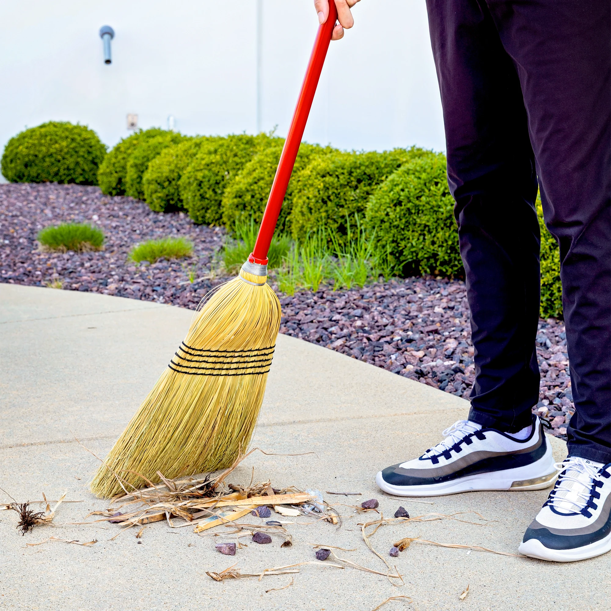 The Janitor Corn Broom has 100% premium broomcorn fibres and is bound by wire. This wide tool is perfect for heavy-duty sweeping.