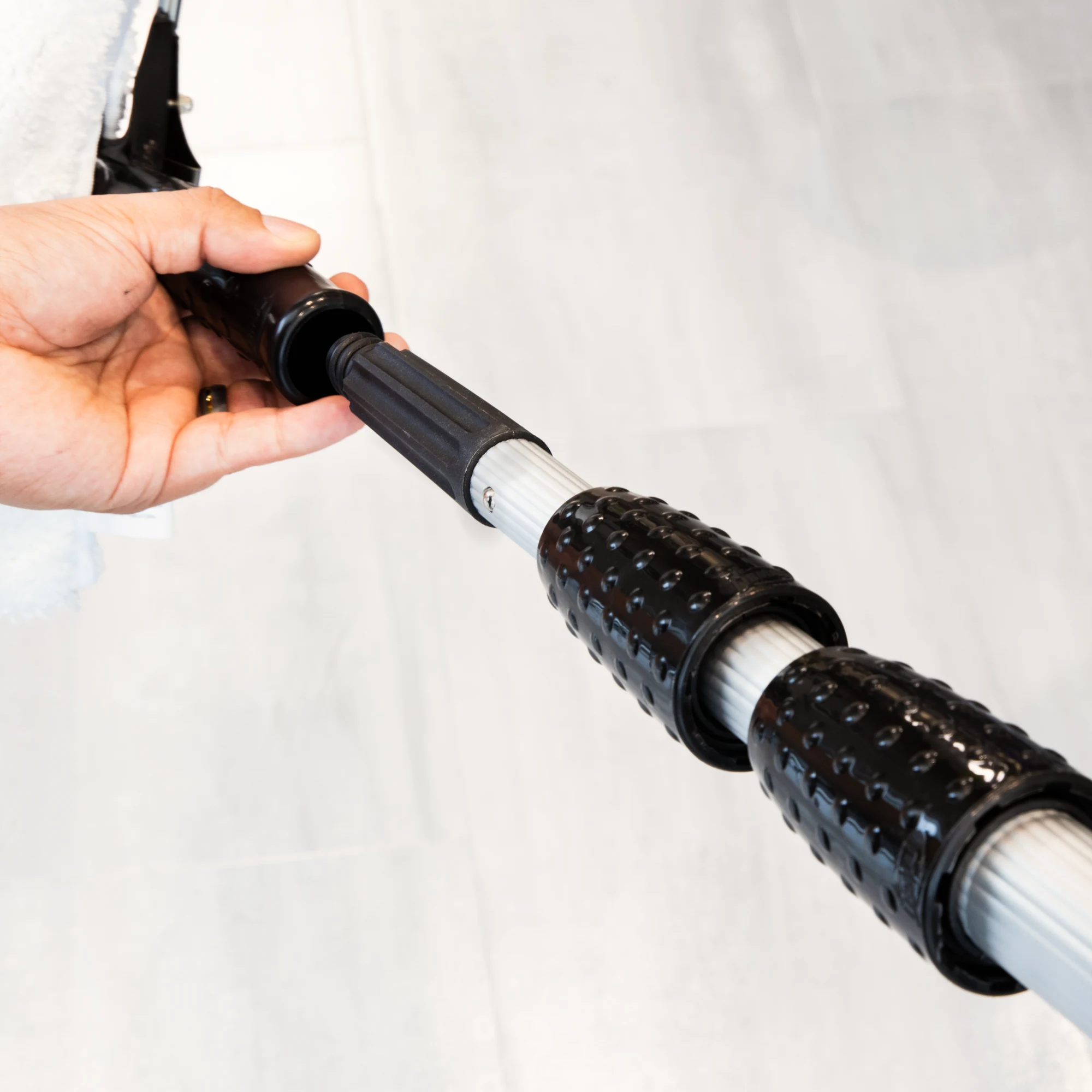 The 8 Foot Extension Handle is compatible with the 24” Flexible Microfiber Duster and Lambswool Duster to enhance their cleaning capabilities. It has a 3-piece handle.