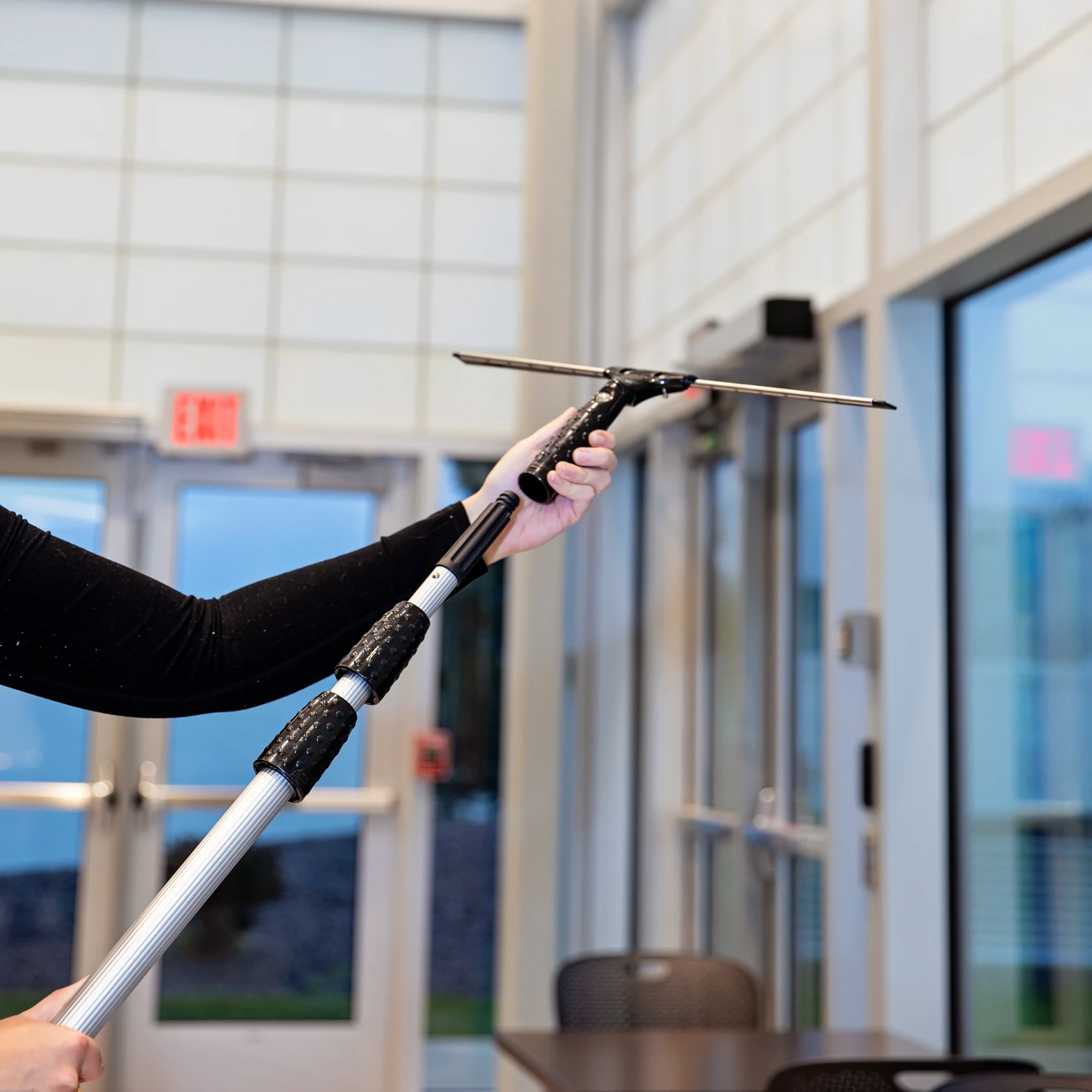The 12 Foot Extension Handle is compatible with the 24” Flexible Microfiber Duster and Lambswool Duster to enhance their cleaning capabilities. It has a 3-piece handle.