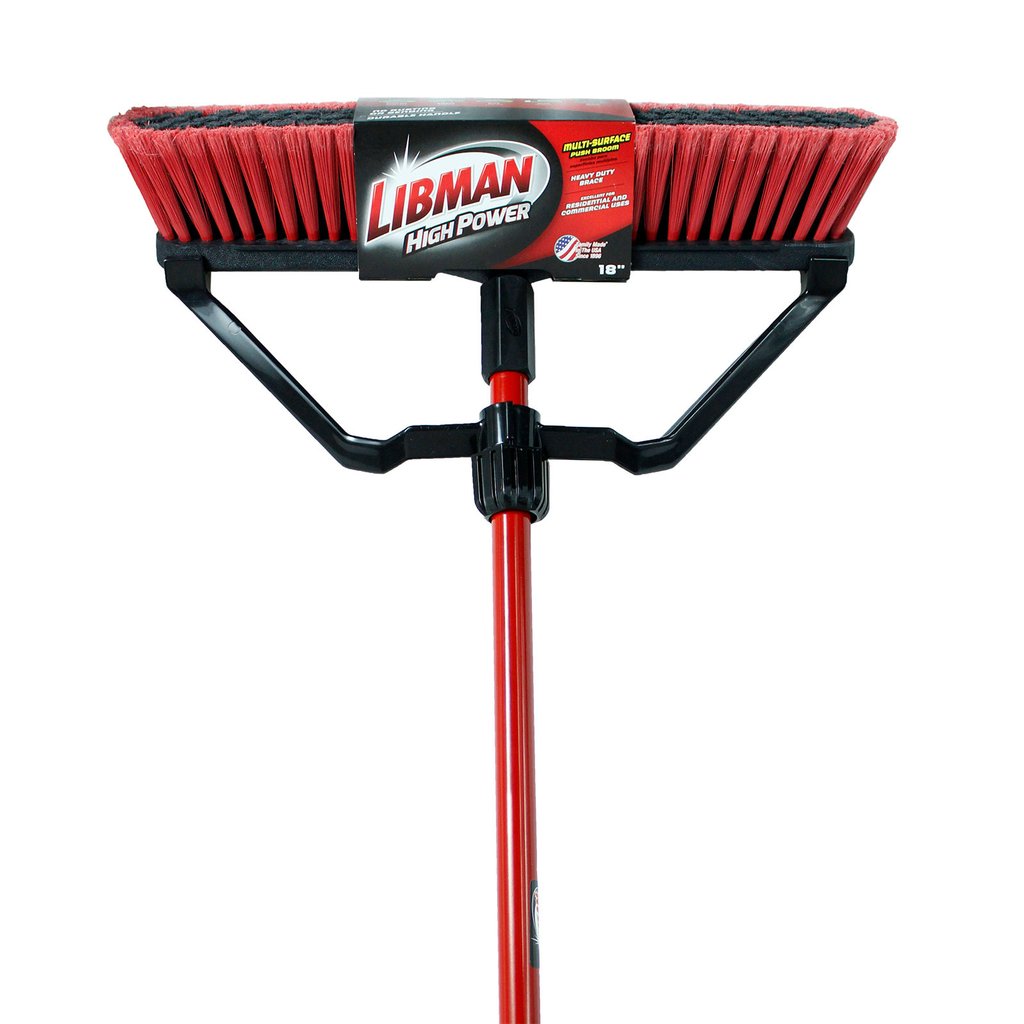 The Multi-Surface Heavy-Duty Push Broom cleans any surface, including concrete, brick, wood, stone, and more. It's firm, flexible polymer fibers are designed to clean and protect. The resin bracket provides extra leverage and durability, and the hanger tip makes storage convenient.