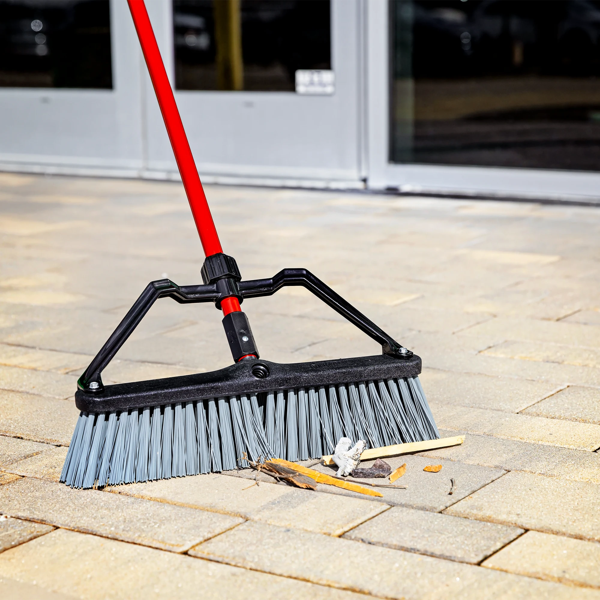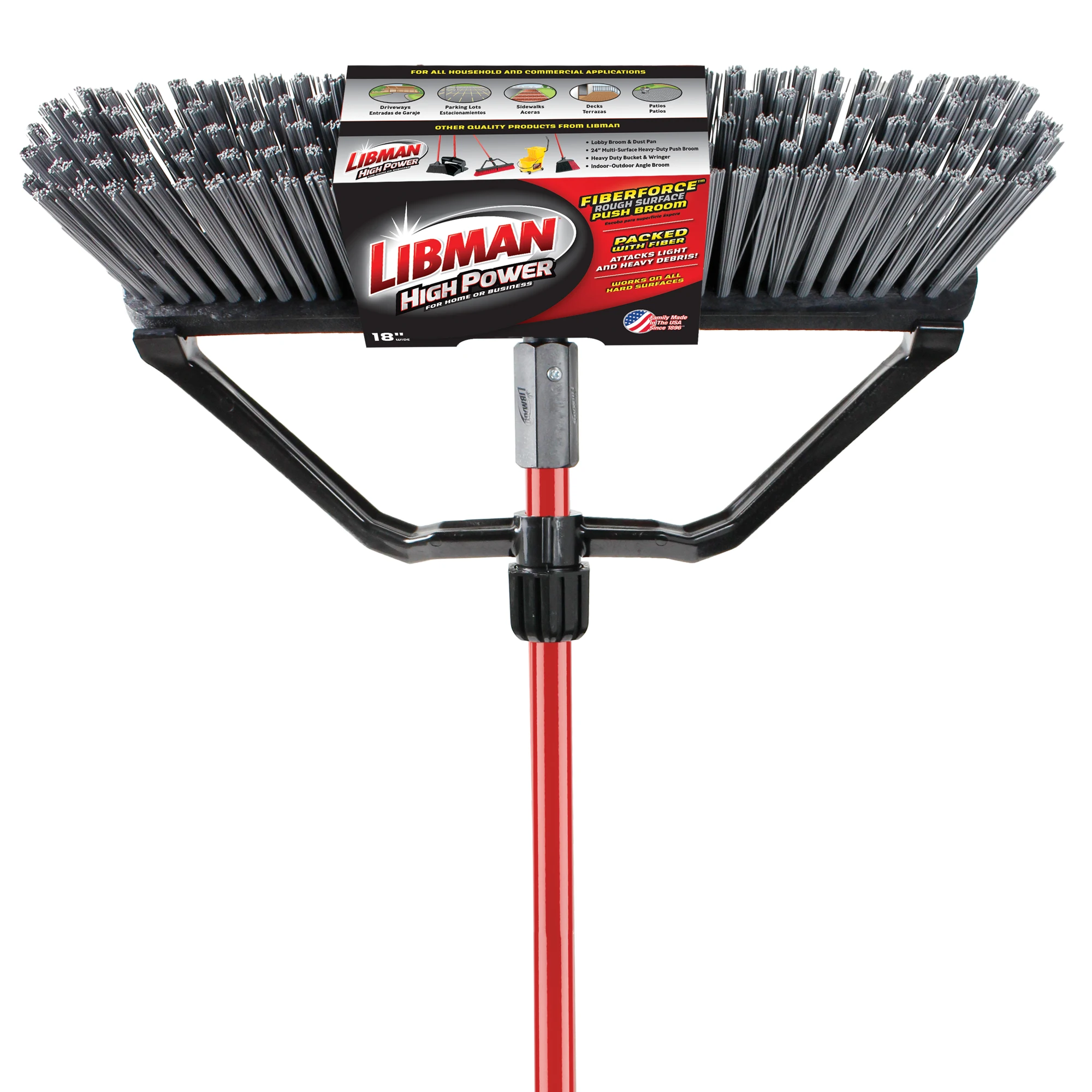 This sweeper cleans rough surfaces, such as non-slip/non-skid, stone, terrazzo, concrete, other textured floor surfaces, and agricultural applications. It's stiff polymer fibers withstand heavier debris and surfaces. The resin bracket provides extra leverage and durability.