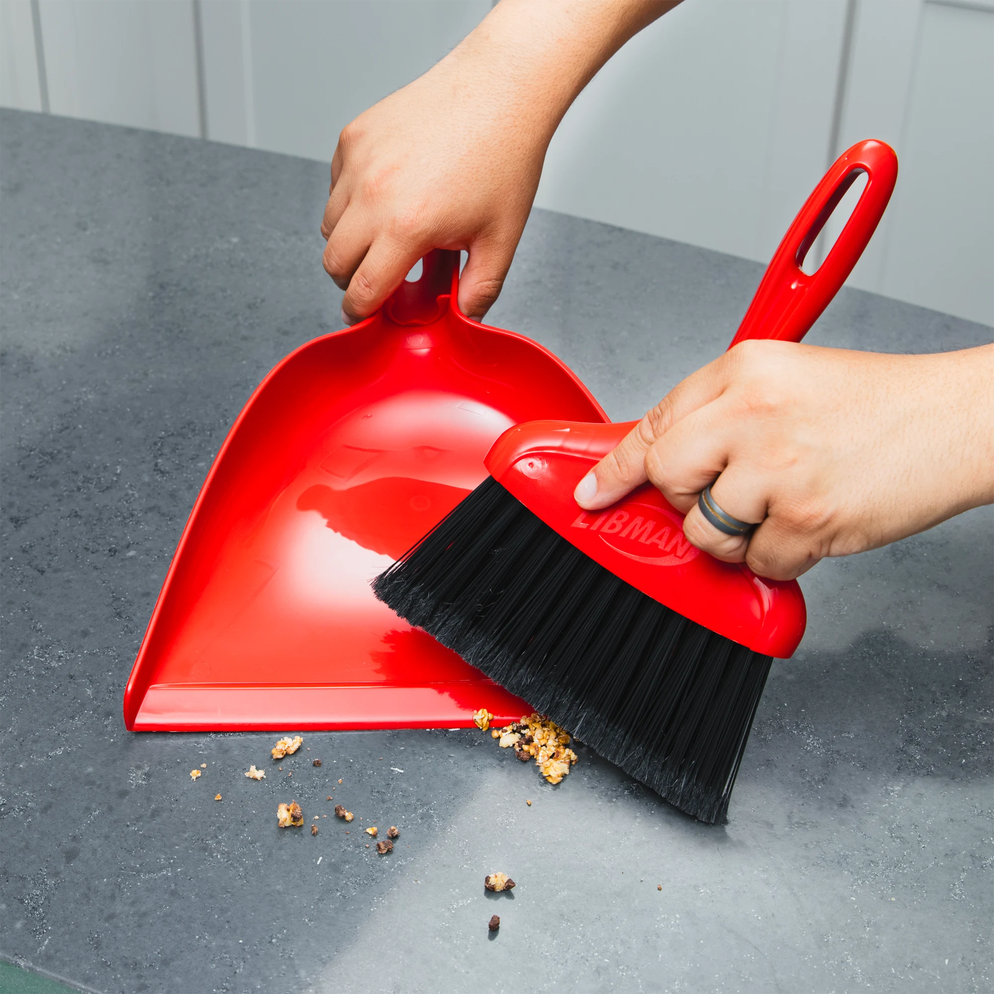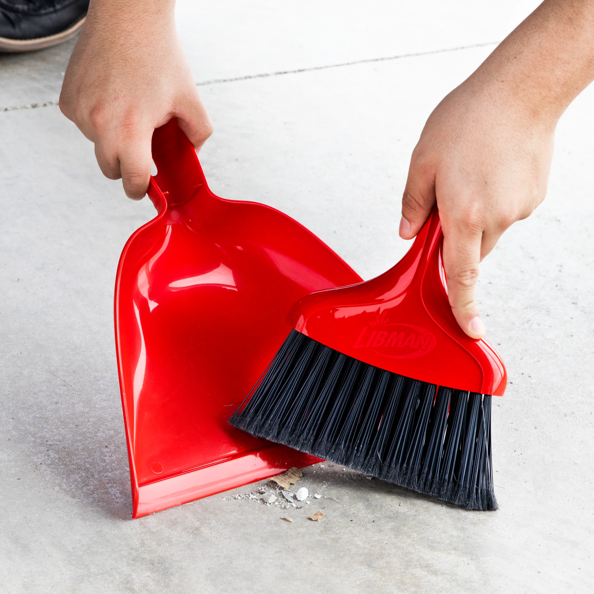 The Dustpan & Whisk Broom has durable split-end fibers to pick up debris and a wide scoop for a quick clean-up. For convenience, the broom has a built-in storage hanger hole.