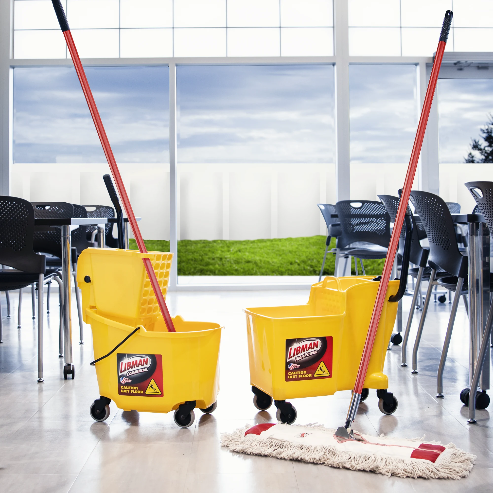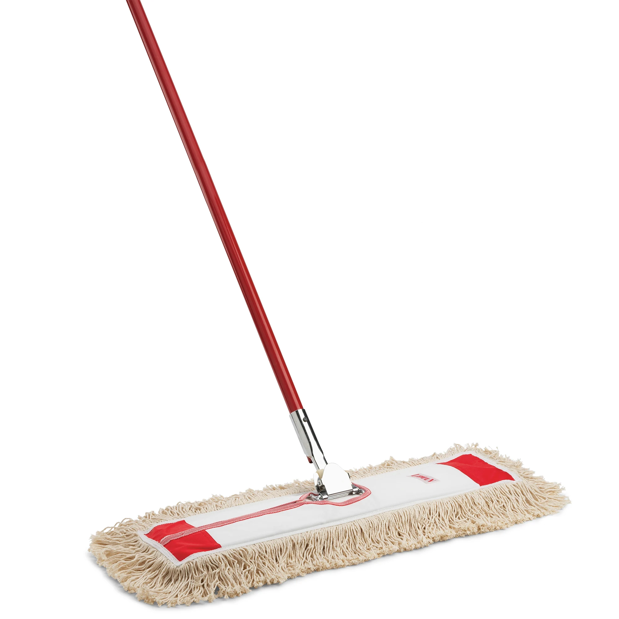 The 24” Dust Mop is a traditional cotton-style dust mop for commercial use. The dusting head is made of a cotton-blend material.