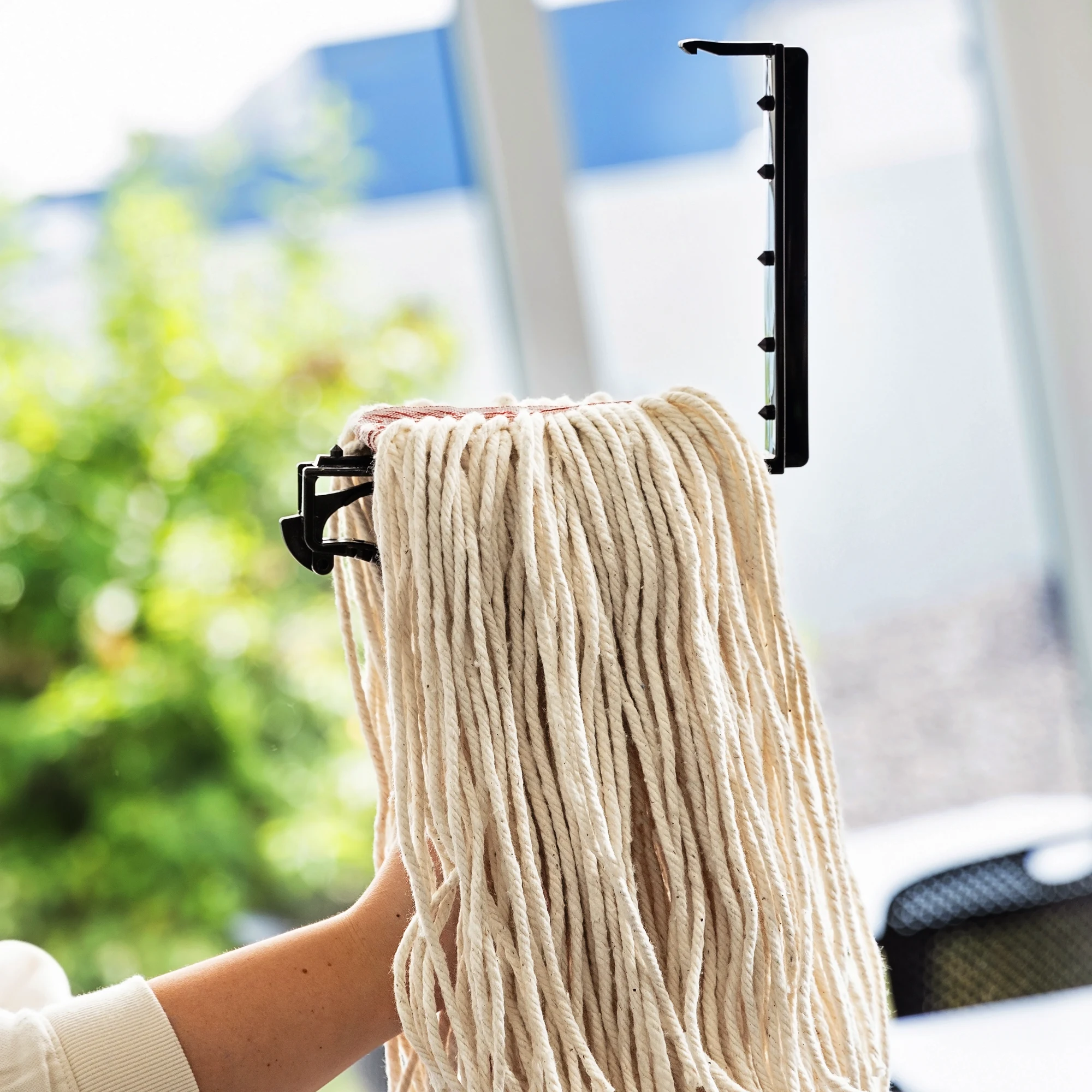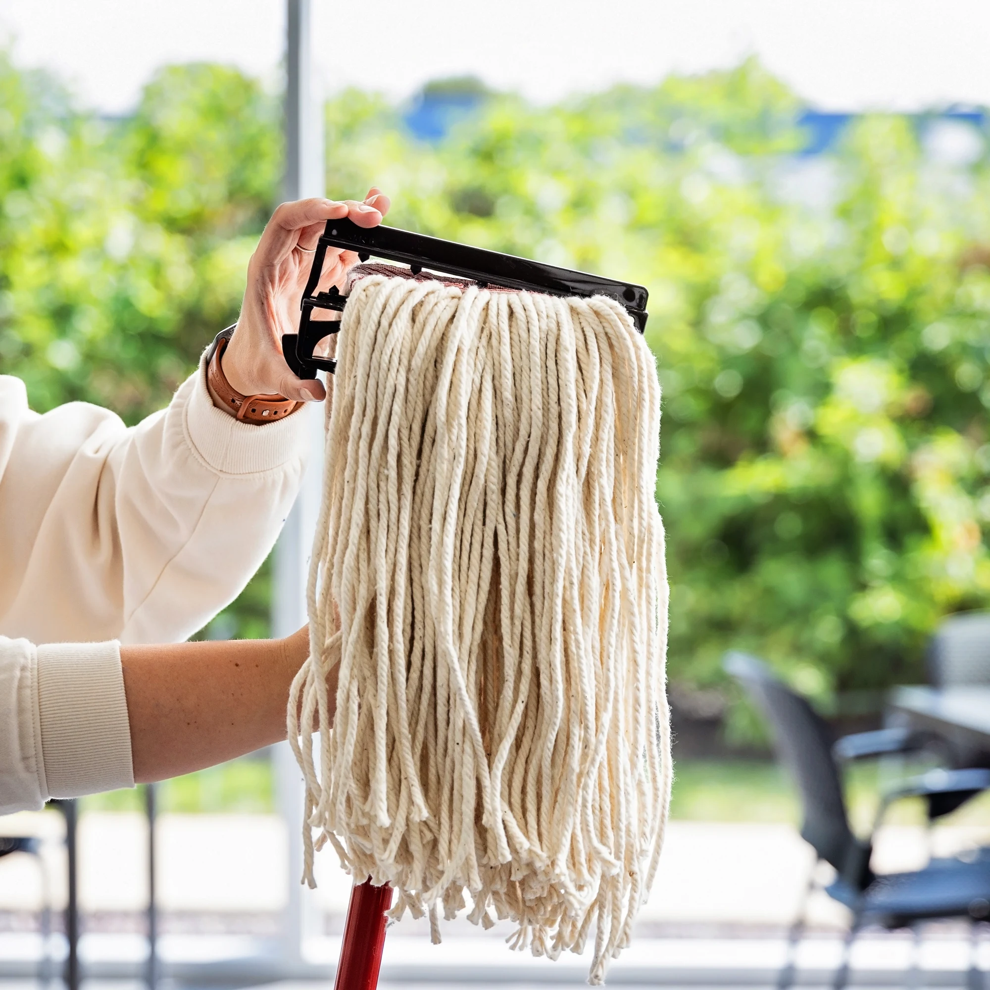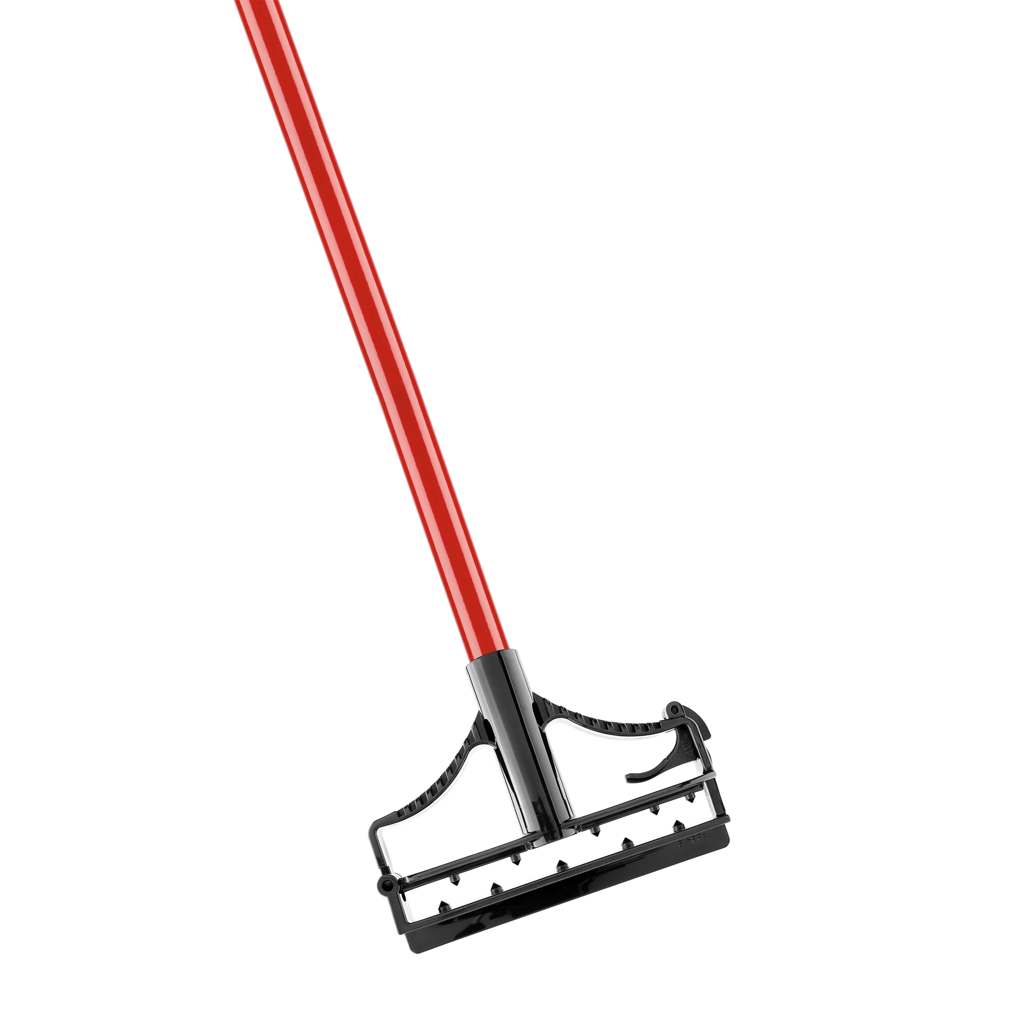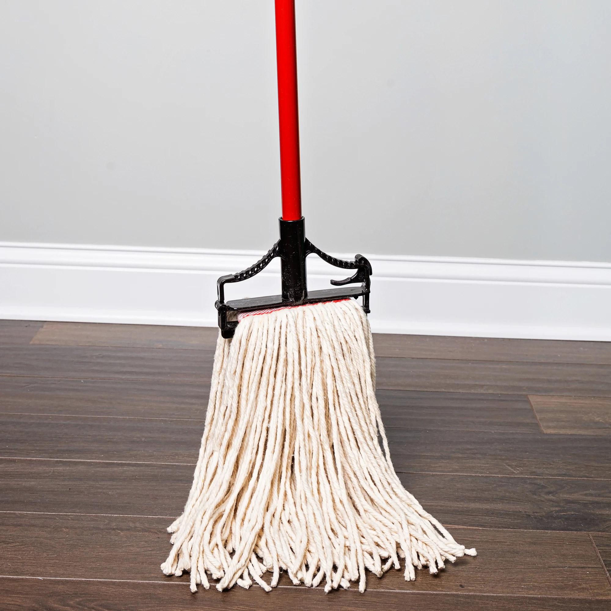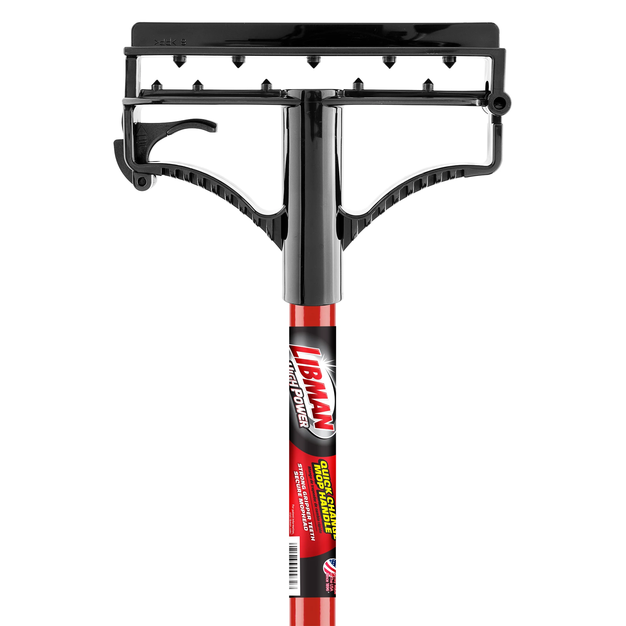The Quick-Change Mop Handle has a hinged head that opens completely to remove and add mop heads.
