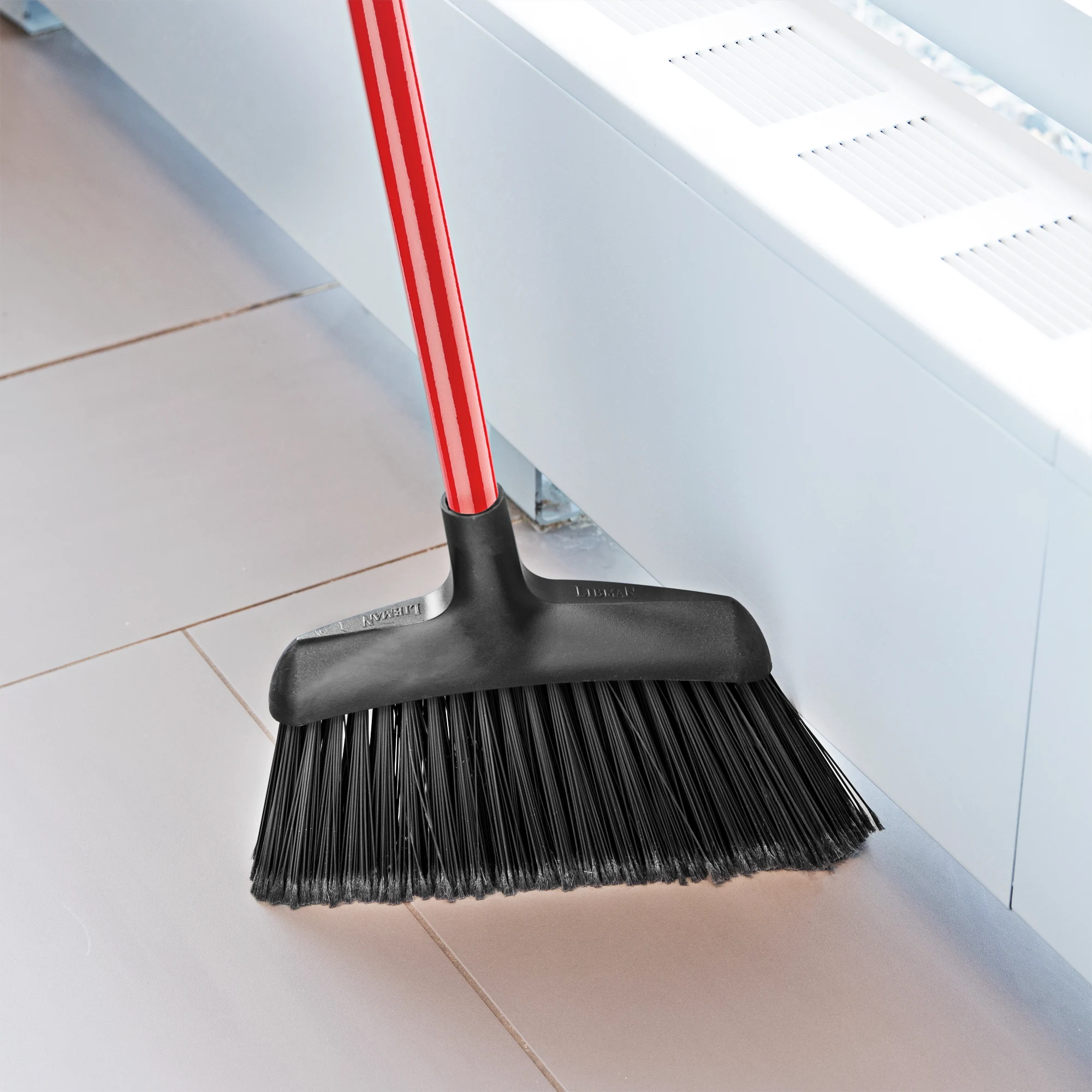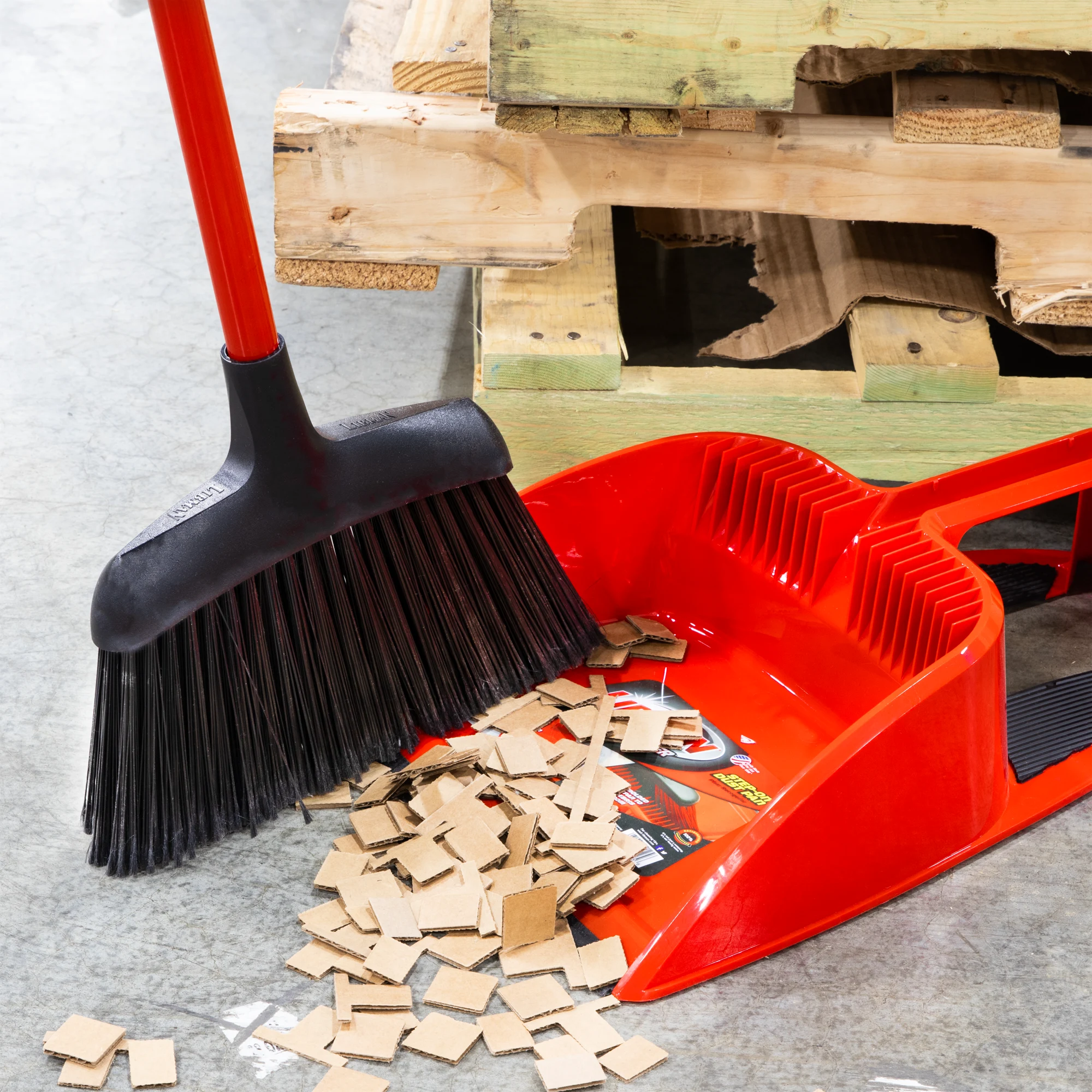 The Commercial Angle Broom is specifically designed for everyday cleaning. Featuring a 13” wide sweeping path that can be used on a variety of surfaces, this steel-handled angle broom has stiffer bristles than most other angle brooms, capturing more dirt/debris from rough, sticky, or wet floors. The 5” long fibers are made from recycled PET, creating an effective sweeping path while keeping plastic out of landfills. The handle connection point is protected from pressure and liquid/rust deep inside the broom block.