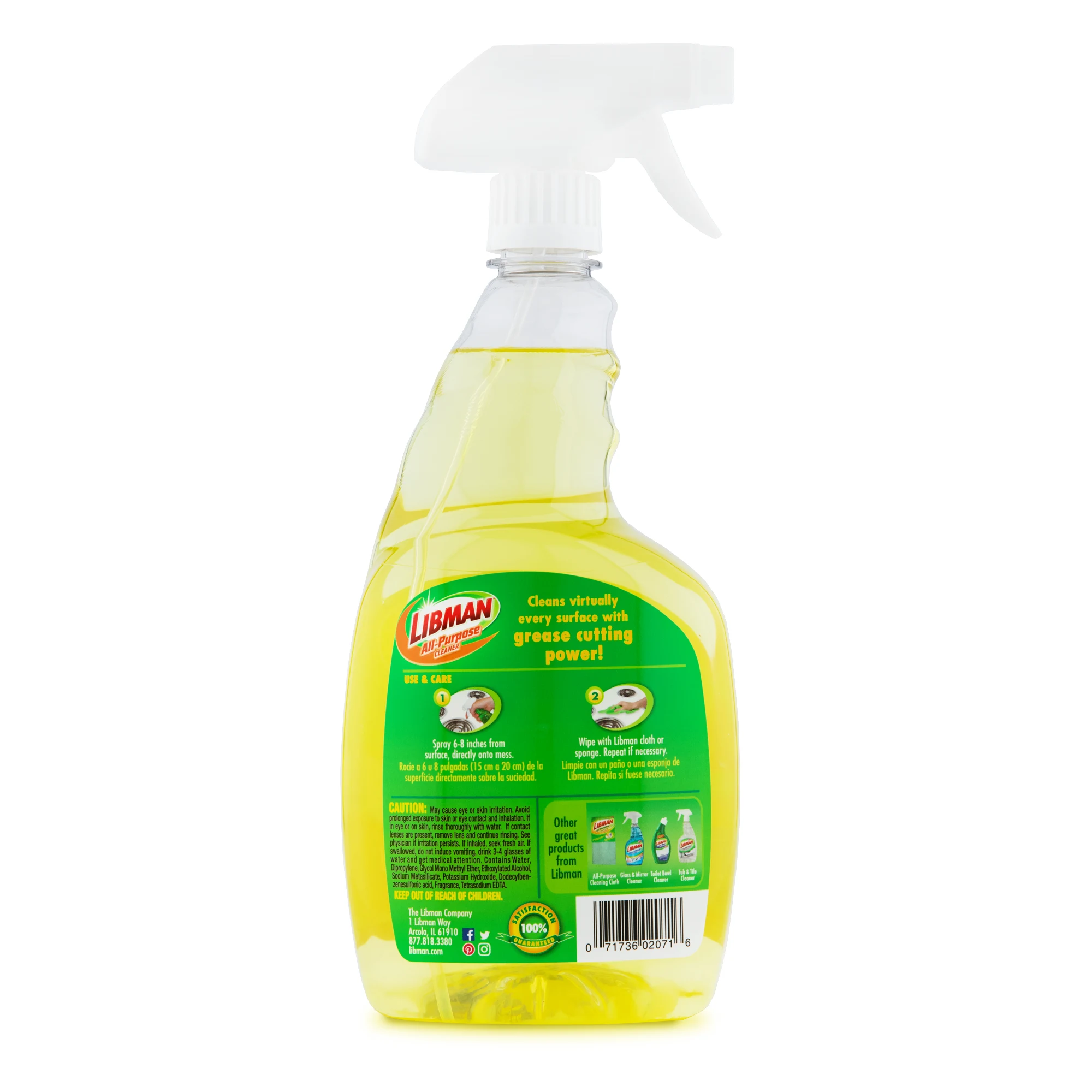 The All-Purpose Cleaner cleans virtually any surface with grease-cutting power! Featuring a refreshing citrus scent, this powerful cleaner/degreaser is ideal for cleaning in the kitchen, bathrooms, and even outdoors! The spray nozzle features two positions: one for wide-spray applications and another for pinpoint spray accuracy. Simply spray 6-8 inches away from the surface, directly onto the mess, and wipe clean with a cleaning cloth or sponge for the best results.