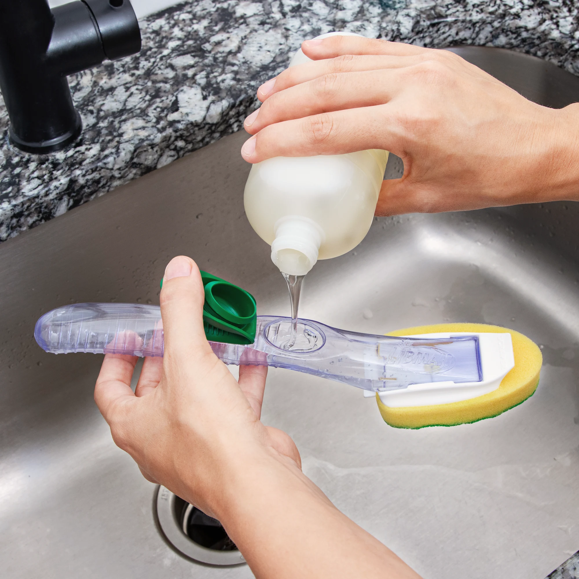 The All-Purpose Refills contain a non-scratch acrylic grain surface with an easy-rinse design and are made to hold dish soap, enabling cleaning.