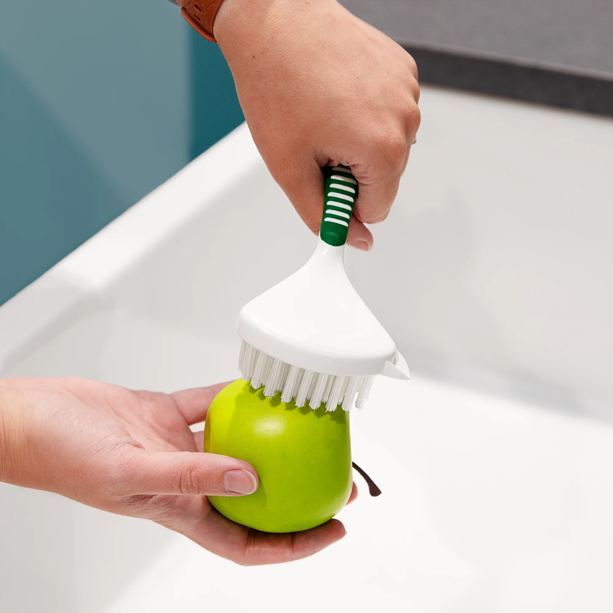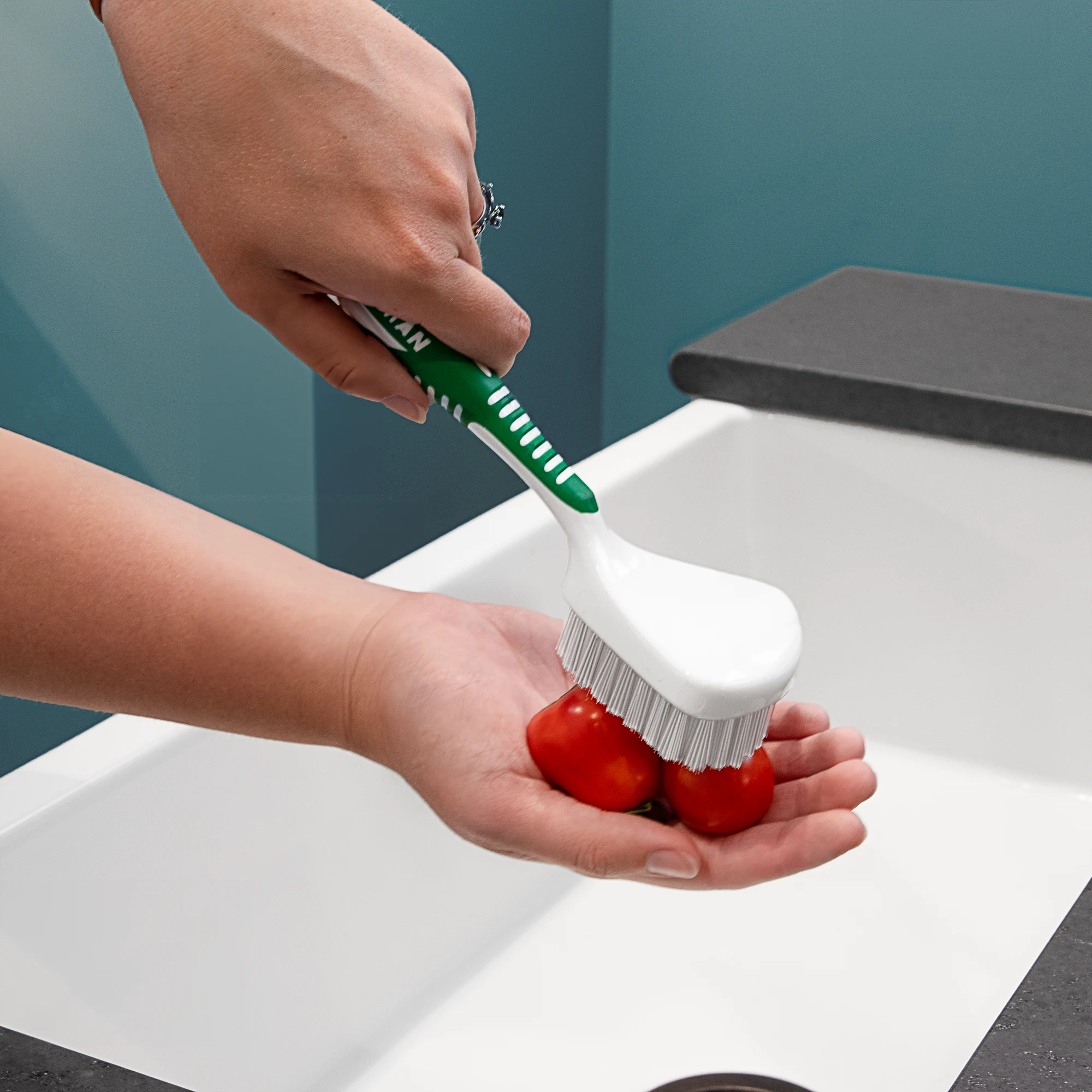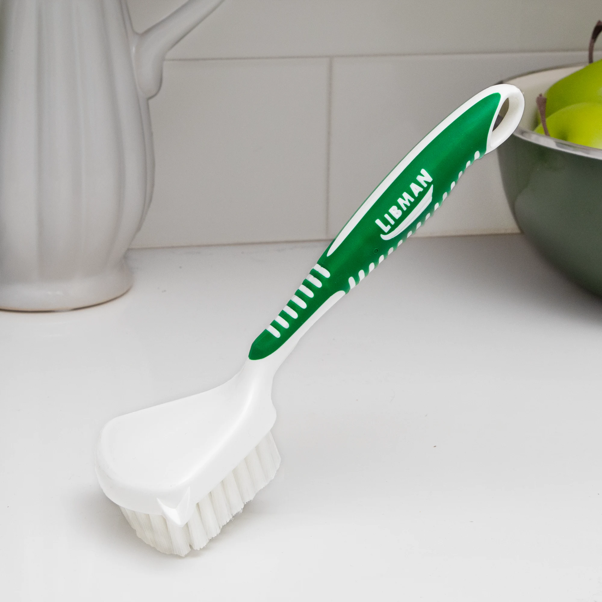 - Nylon bristles are gentle on kitchenware and stuck-on messes