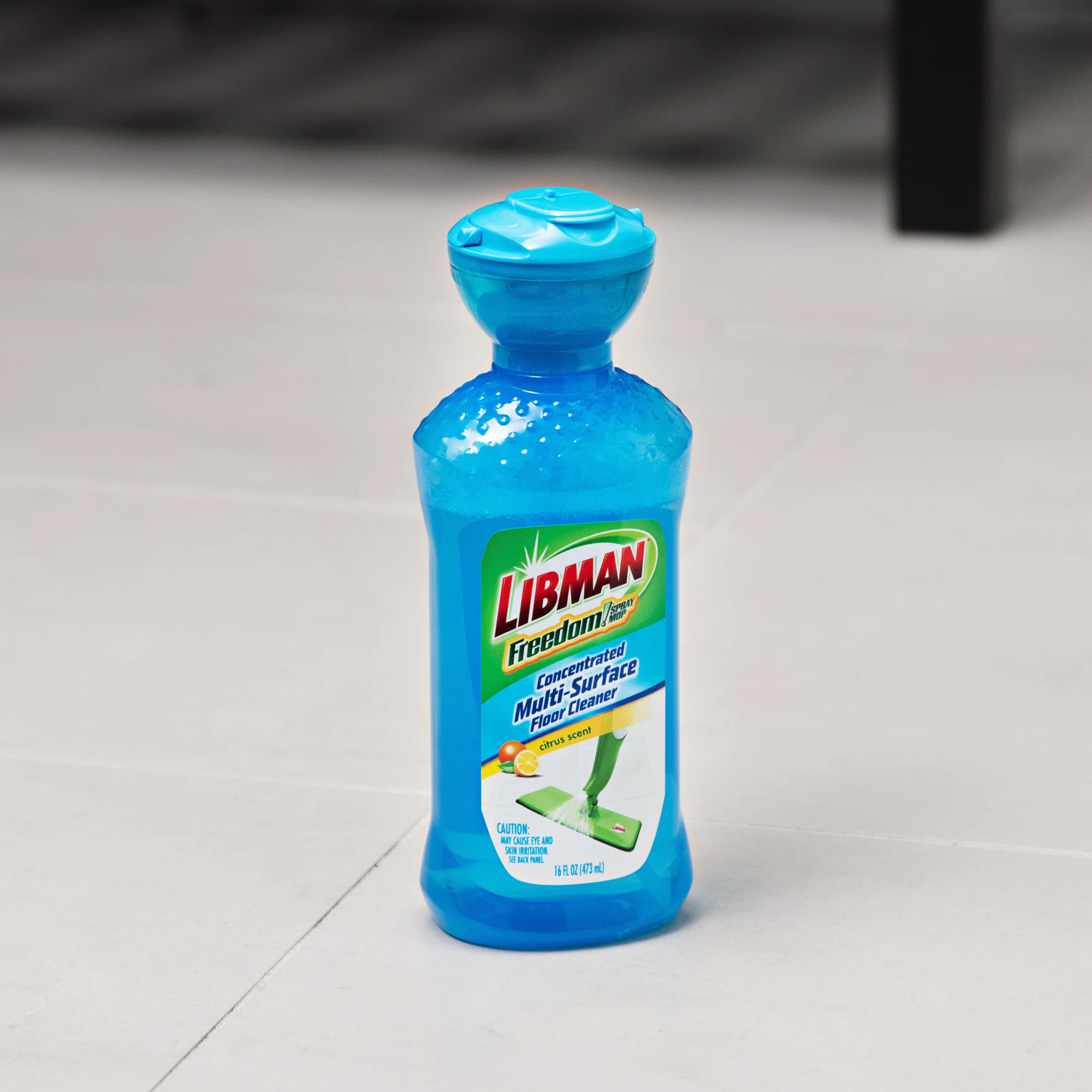 Make it easier to clean with your Freedom® Spray Mop with the Freedom Concentrated Multi-Surface Floor Cleaner. The lid perfectly measures 1 oz. of cleaning solution, making it easy to fill your Freedom® Spray Mop tank with the exact amount of cleaner and water. Specifically-blended to cut through and clean away dirt and grime on multiple surfaces, it is optimized to work with your Freedom® Spray Mop. The fresh, citrus scent leaves your house smelling clean.