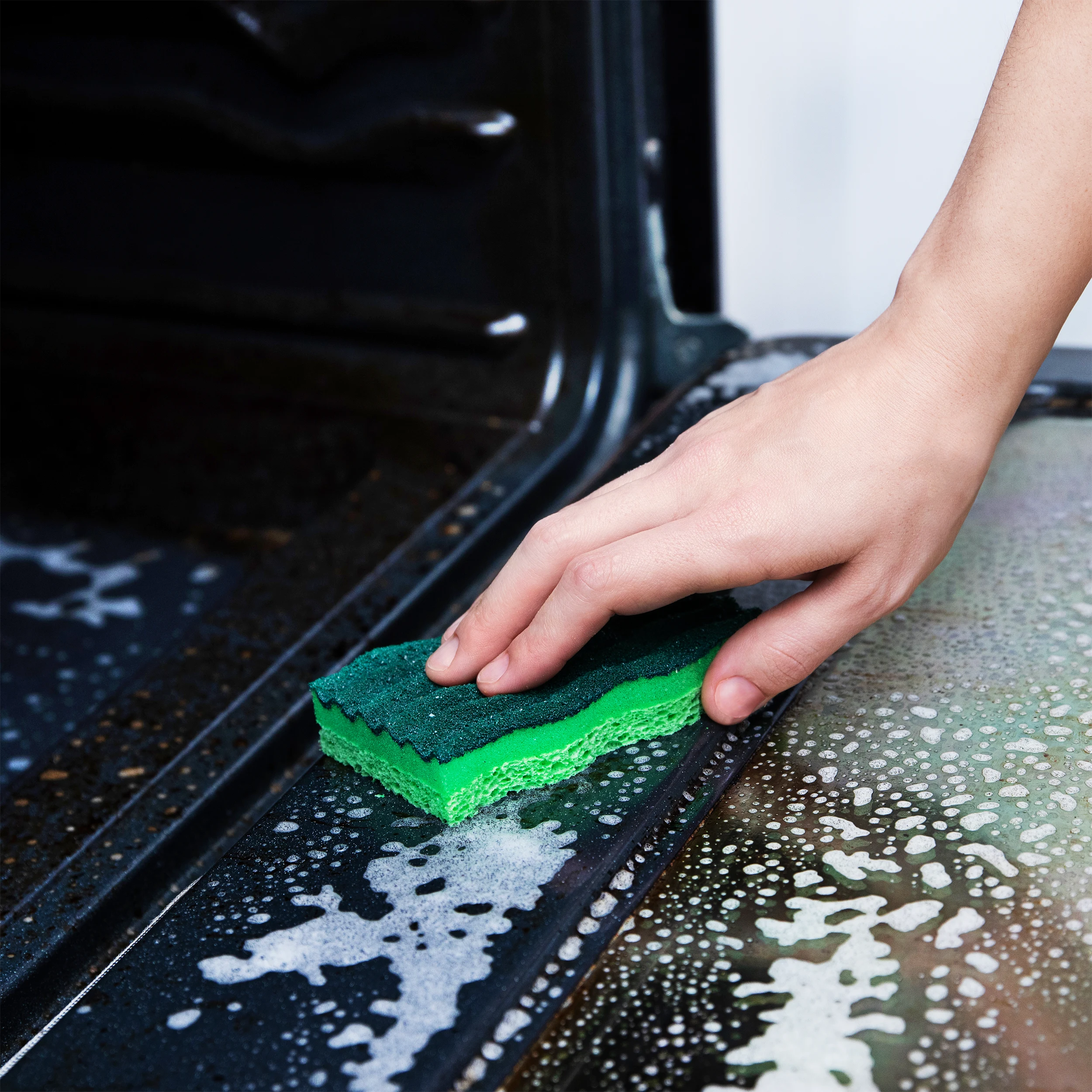The Heavy Duty Easy Rinse Scrub Sponge is designed to step up in the face of hard cleaning jobs. The unique design deep cleans while drying quickly. The surface features deep grooves to remove debris, and will not clog with sticky messes. Best of all, the sponges are dishwasher-safe and will not scratch non-stick or delicate surfaces.