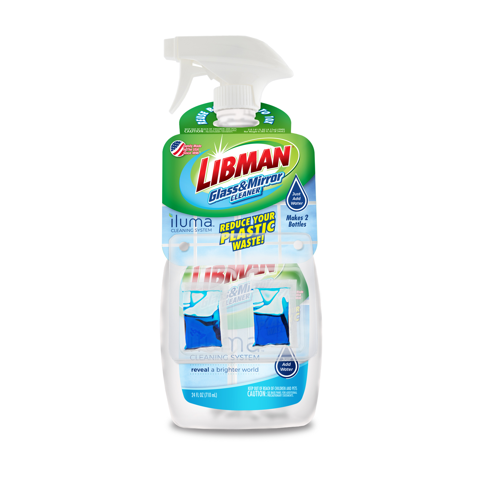 Reduce your plastic waste and clean your glass, chrome, and mirrors more completely with the iluma™ Concentrated Cleaning System. At the Libman Company, we believe in creating quality products with cutting-edge technology to make life easier for you and reduce waste in the process. The iluma™ Concentrated Cleaning System reduces plastic waste and carbon footprints by reusing plastic containers, and reducing your waste from plastic cleaning bottles by up to 90%! This concentrated glass and mirror cleaner comes with 2 liquid pods to mix with water for a more environmentally friendly cleaning option. With convenient iluma™ refills, you can reuse the included bottle up to 10 times.