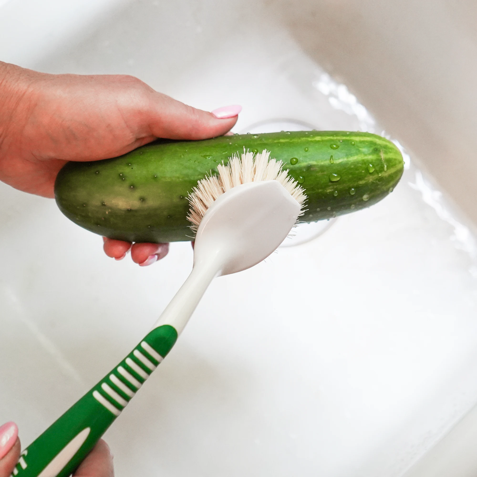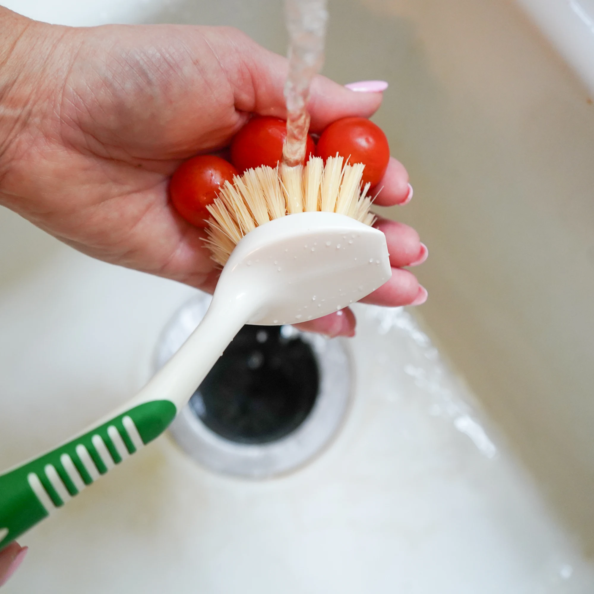 The Kitchen & Vegetable Brush contains natural tampico fibers for a firm yet flexible cleaning experience in the kitchen. The brush’s scraper edge helps remove extra debris.