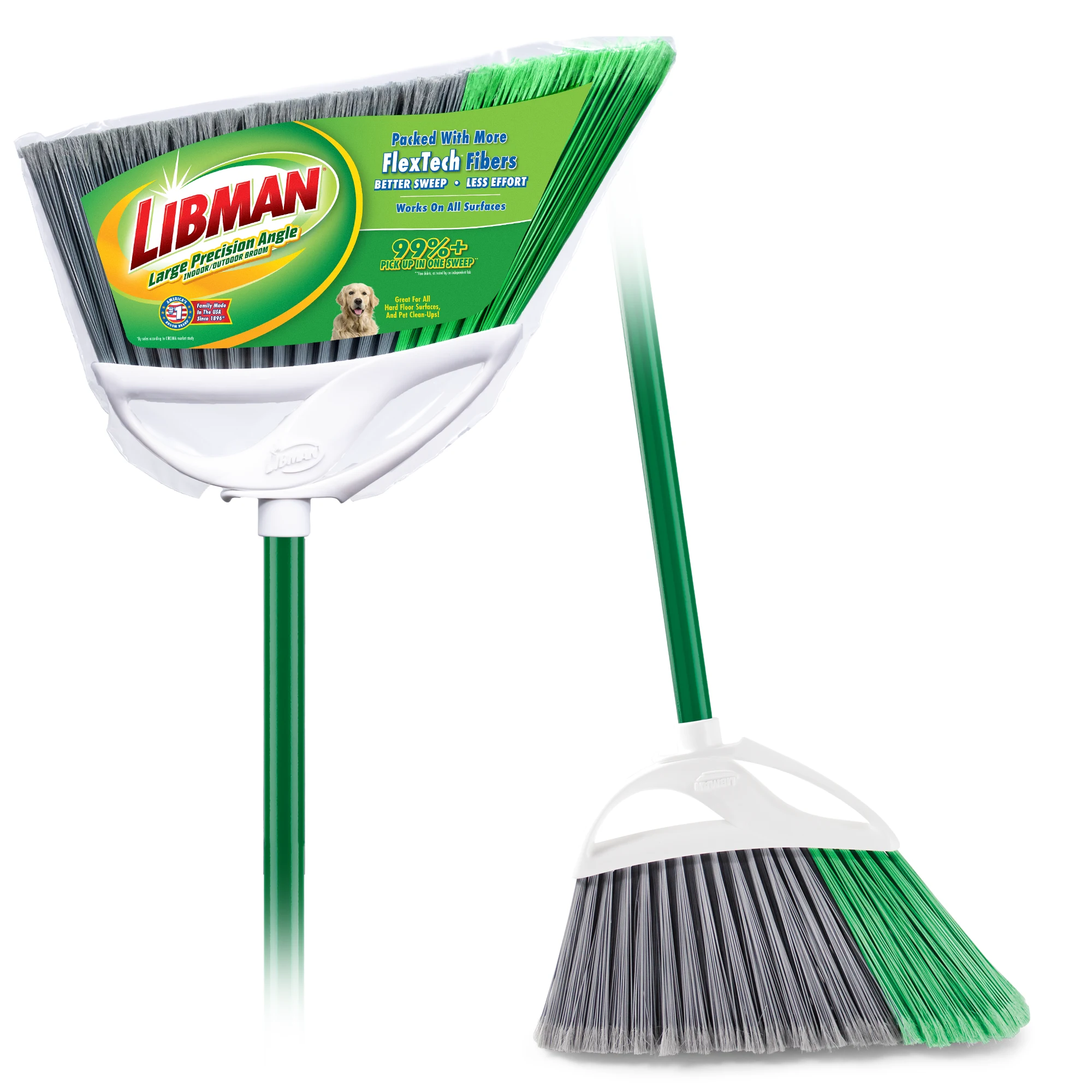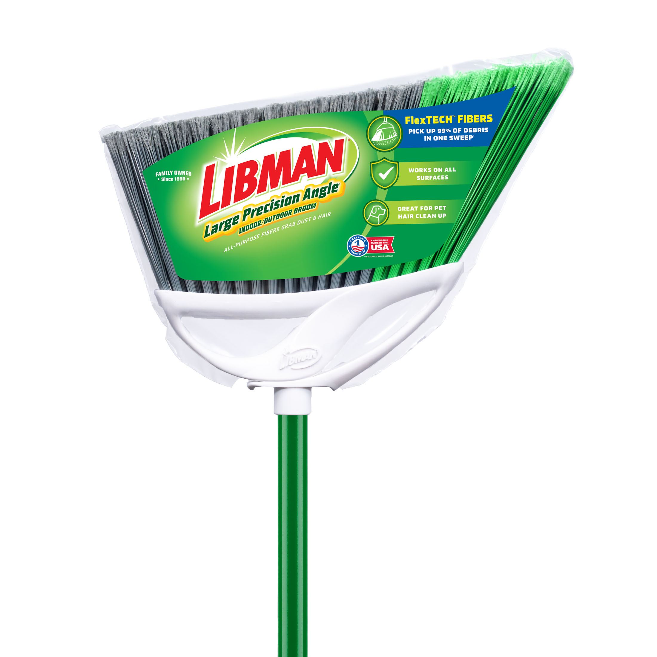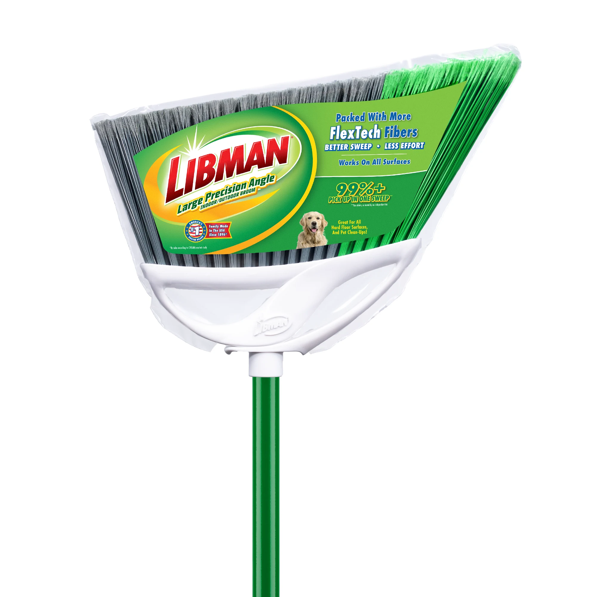 When you need to clean larger areas, the Large Precision Angle® Indoor/Outdoor Broom should be your go-to cleaning tool. It's wide broom head, overall quality construction, and fibers that remove over 99% of dust, dirt, and hair in one sweep are perfect for any job around the house, patio, or garage. The environmentally friendly 6” long fibers are precisely flagged to better collect fine dirt and dust.
