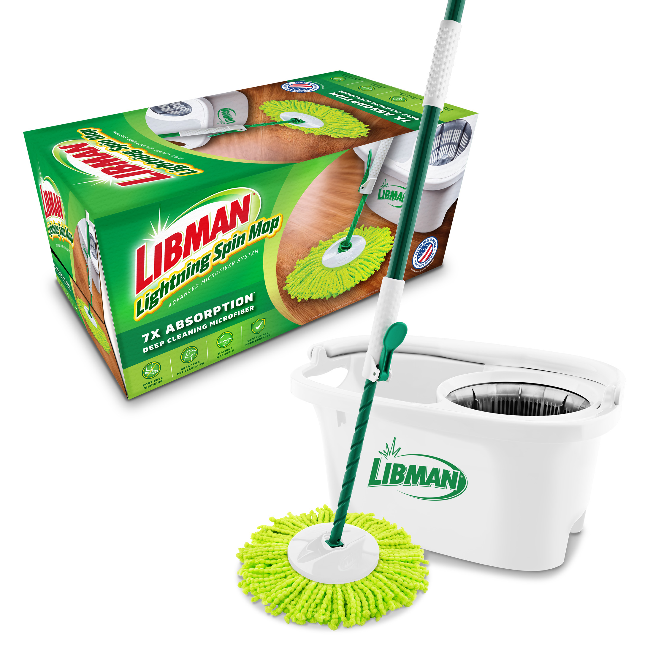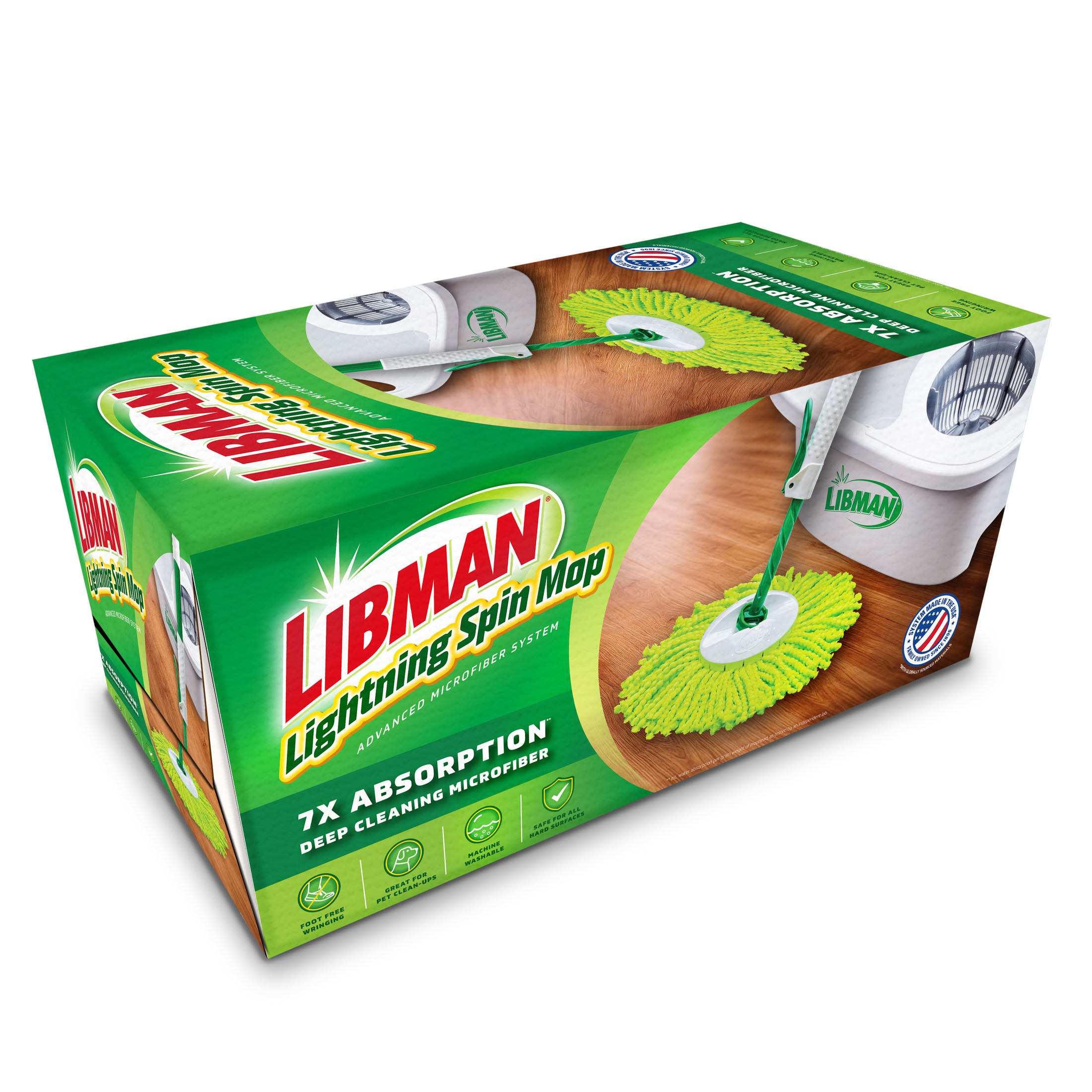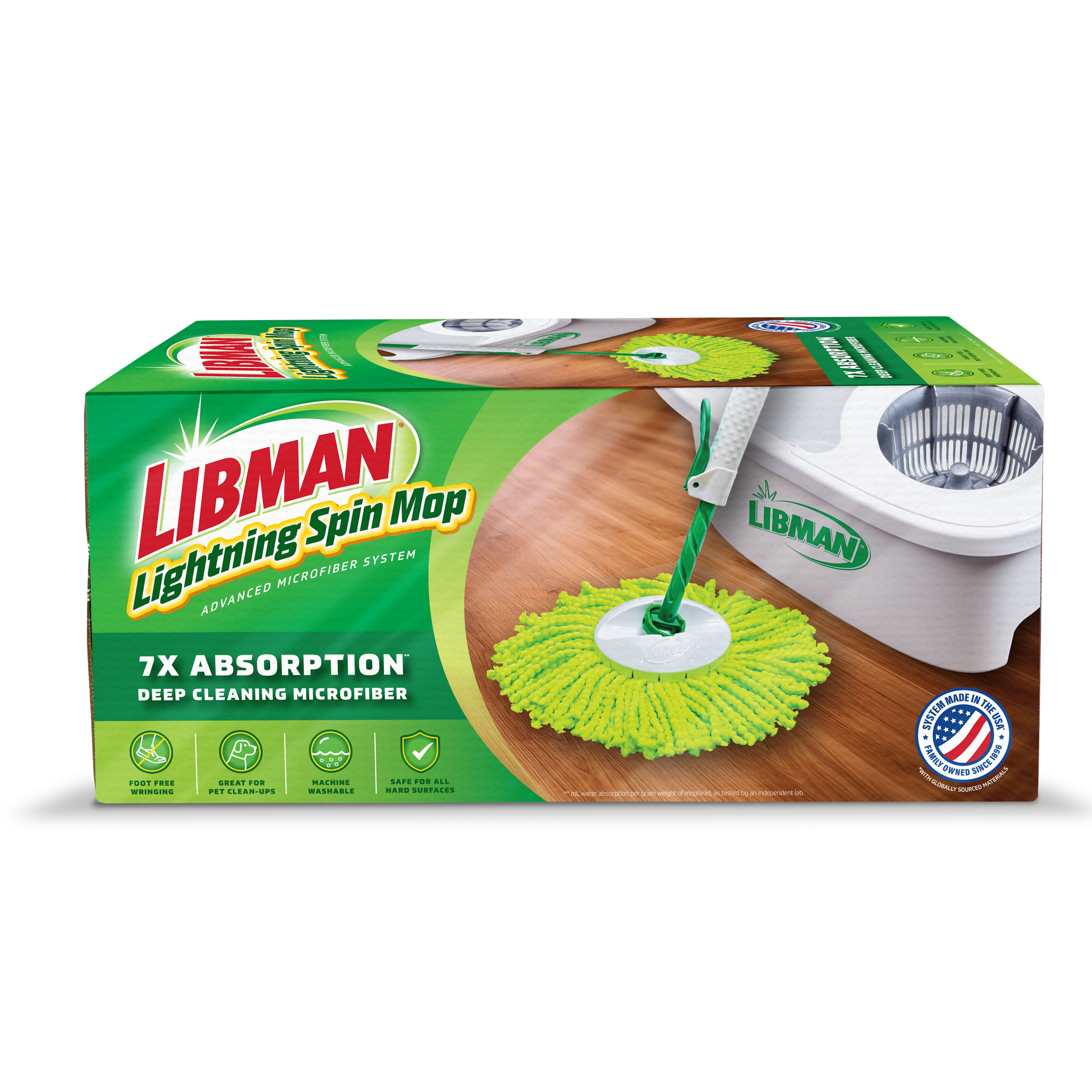 - Mop head absorbs 7x its weight to tackle spills in seconds