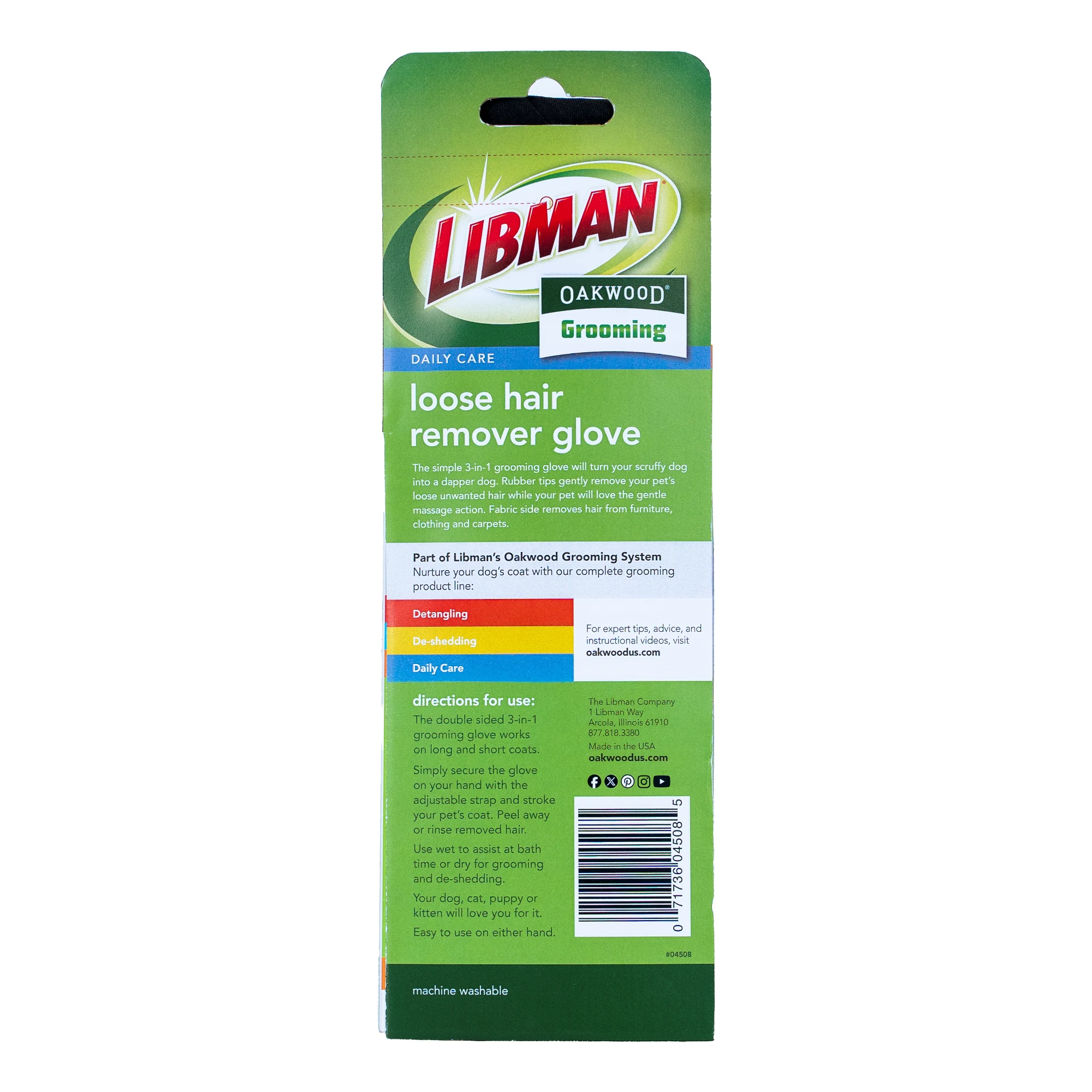 This convenient grooming glove is easy to use as a hair remover, massager, and wash glove. The rubber tips work to remove loose hair as they gently massage your pet's skin before, during, or between washes. The fabric side of the glove can be used to remove unwanted hair from furniture, clothing, and carpet.