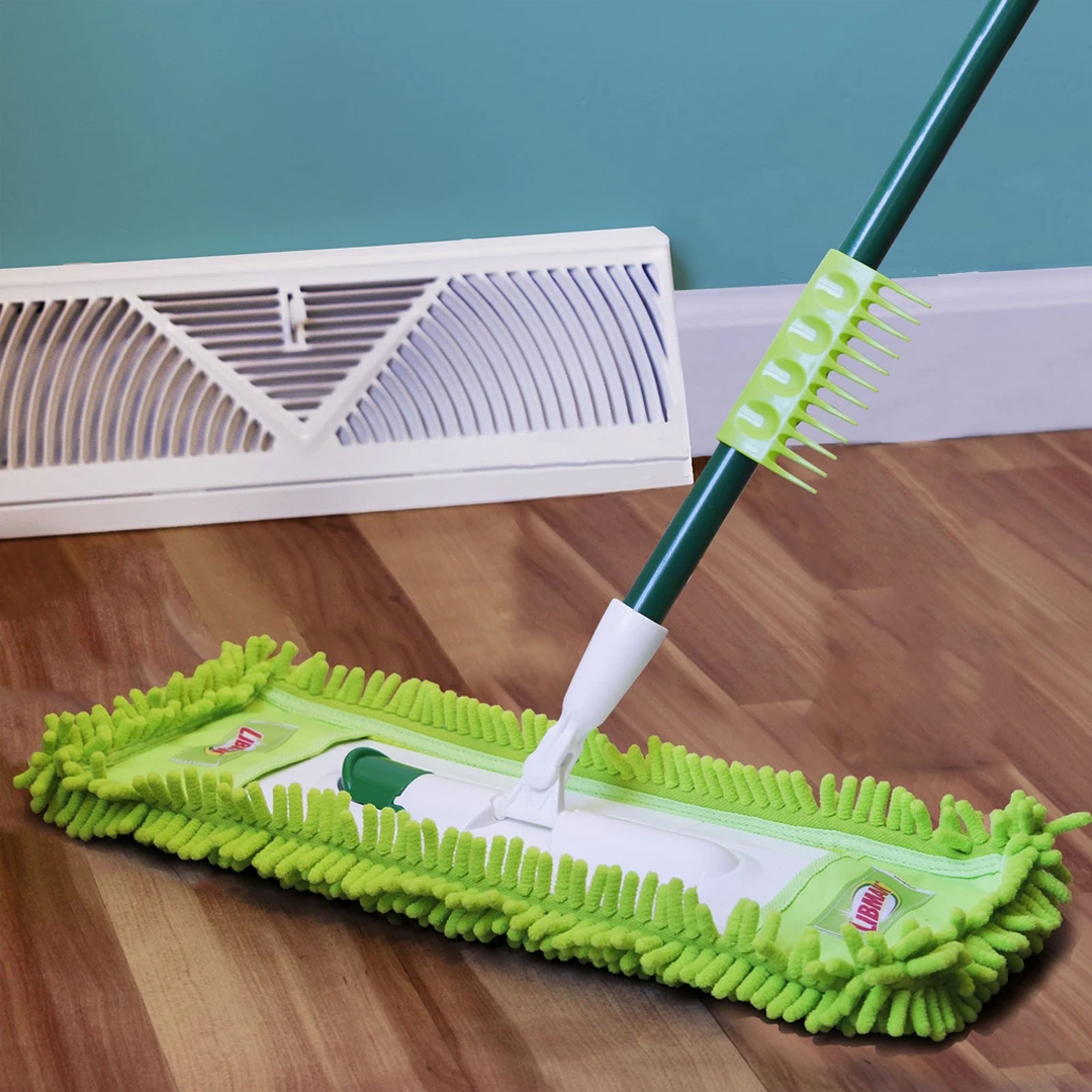 The Microfibre Dust Mop boasts premium microfibre fingers that pick up dust and allergens, protecting your home from dirt and germs. An attached comb helps remove the dust, dirt, and pet hair you pick up.