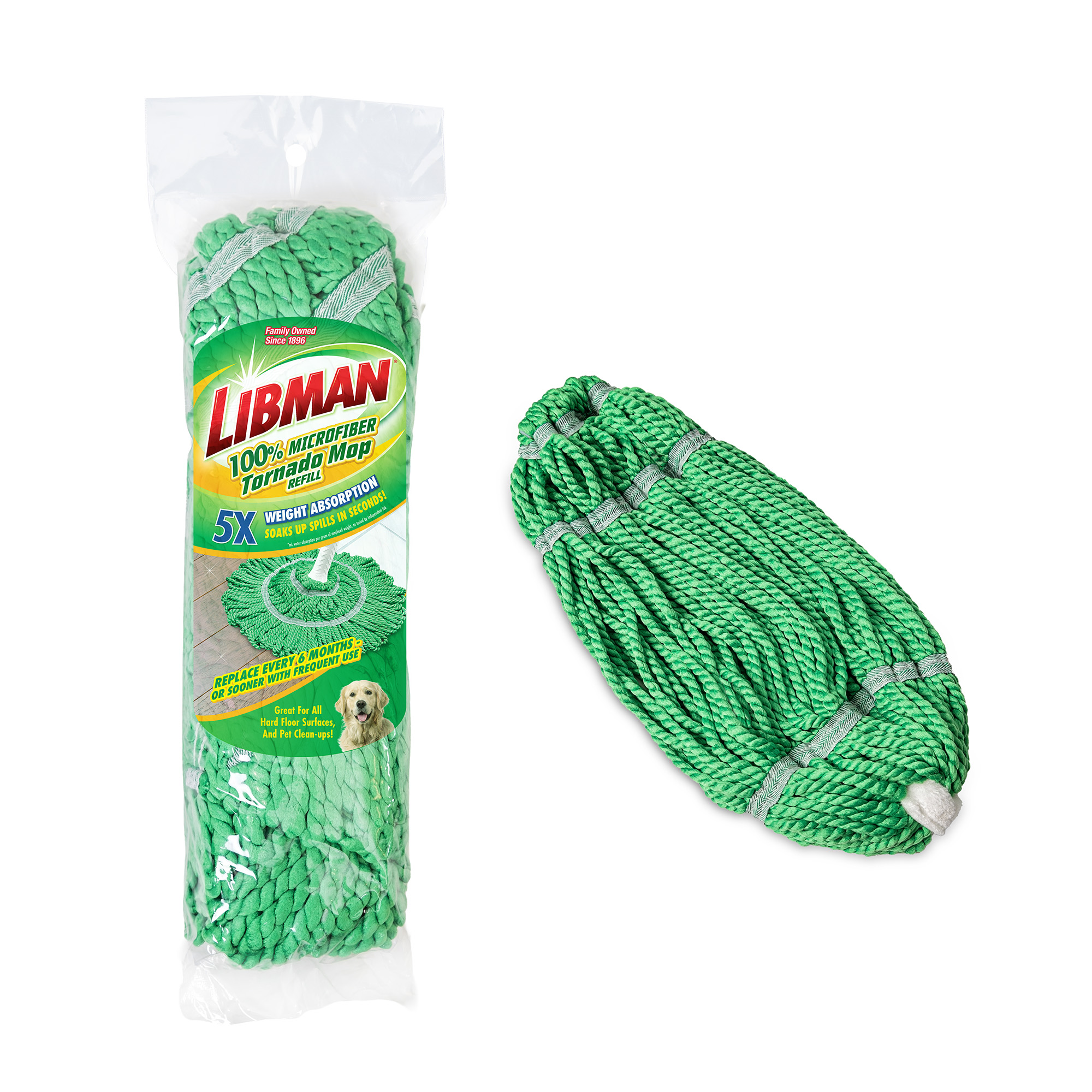 The Microfiber Tornado Mop™ Refill is a quick and easy way to keep your Microfiber Tornado Mop™ cleaning as well as possible. This direct replacement for the Microfiber Tornado Mop™ features a 100% polyester microfiber mop head, designed to grab dirt, dust, and hair. Featuring three green bands to prevent tangles, the large mop head absorbs 5X weight in water and is machine washable.