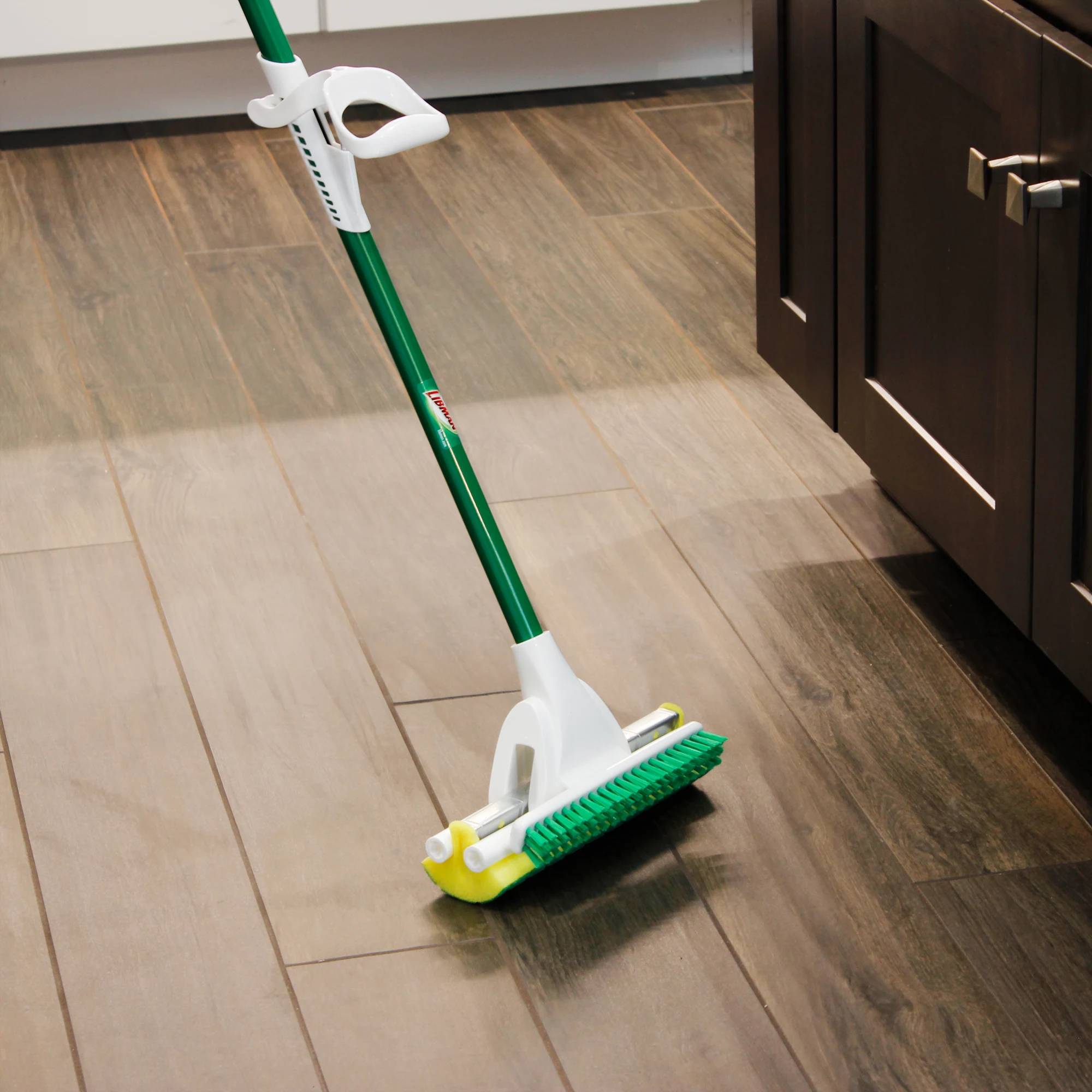 Squeeze every ounce of dirt and grime out of your floors with the Nitty Gritty® Roller Mop. The HexaClean™ tear-resistant mop head absorbs 10x its weight and helps you lift dirt away from vinyl, linoleum, wood, laminate, marble, stone, or ceramic tile. The easy-wring handle makes getting dirty water out of the absorbent mop head a breeze without having to get your hands dirty. When you have harder-to-clean areas, the Nitty Gritty® Roller Mop features a convenient brush that gets into even the toughest areas. When you need to scrub, mop, and wring, the Nitty Gritty® Roller Mop should be your go-to mopping tool.