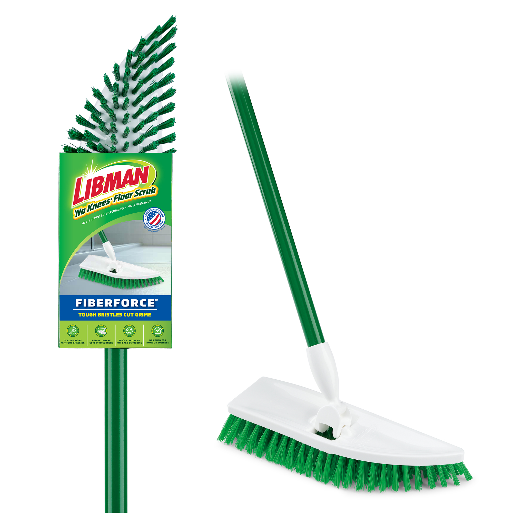 The No Knees Floor Scrub is a tough scrubber, attached to a quality handle, that allows for floor scrubbing without hurting your knees. It has a pointed head to reach corners, and it pivots 180 degrees. This tool works great in bathrooms, kitchens, and more.