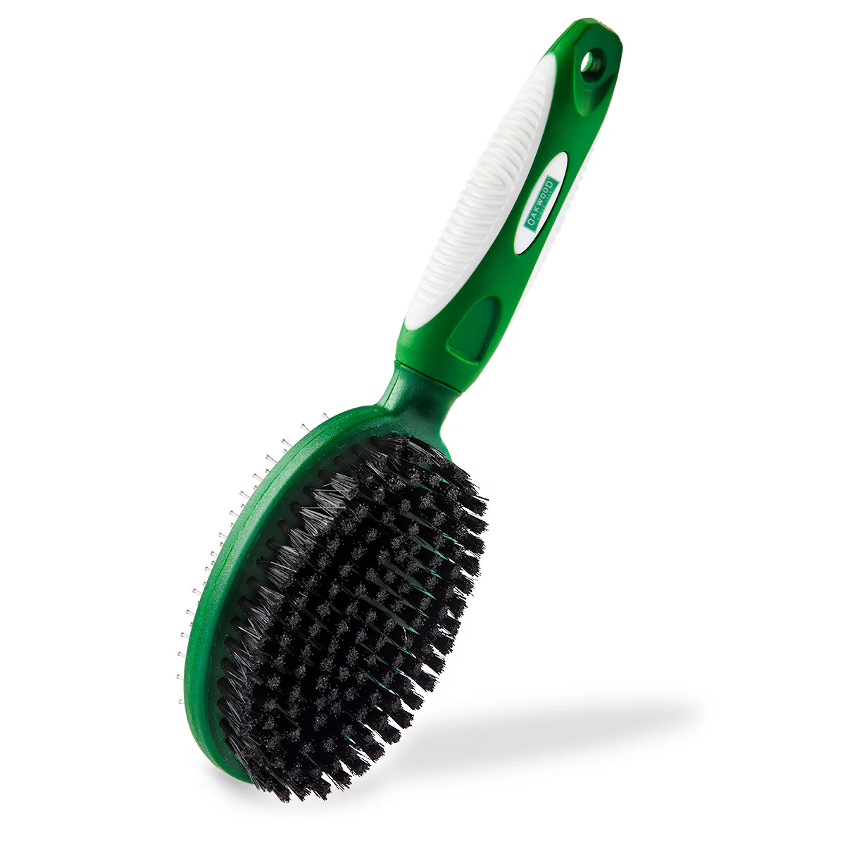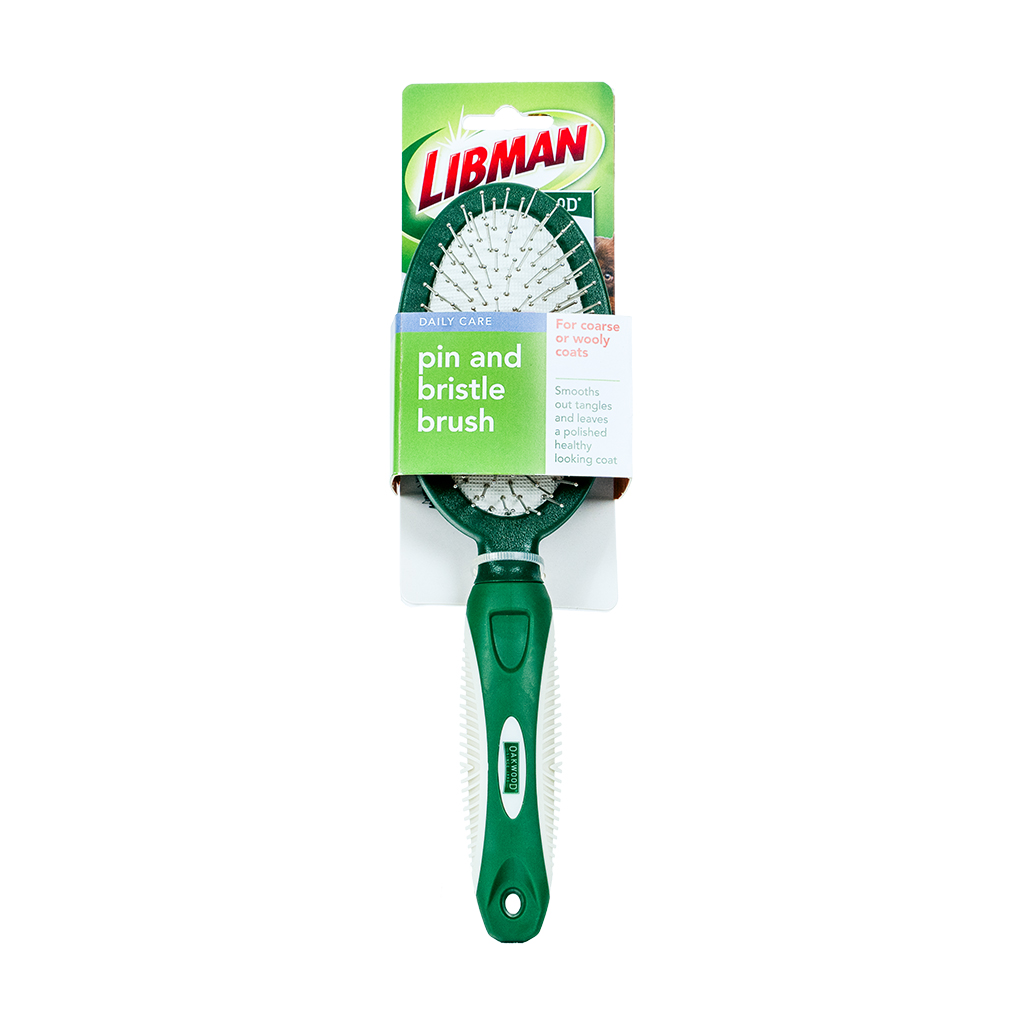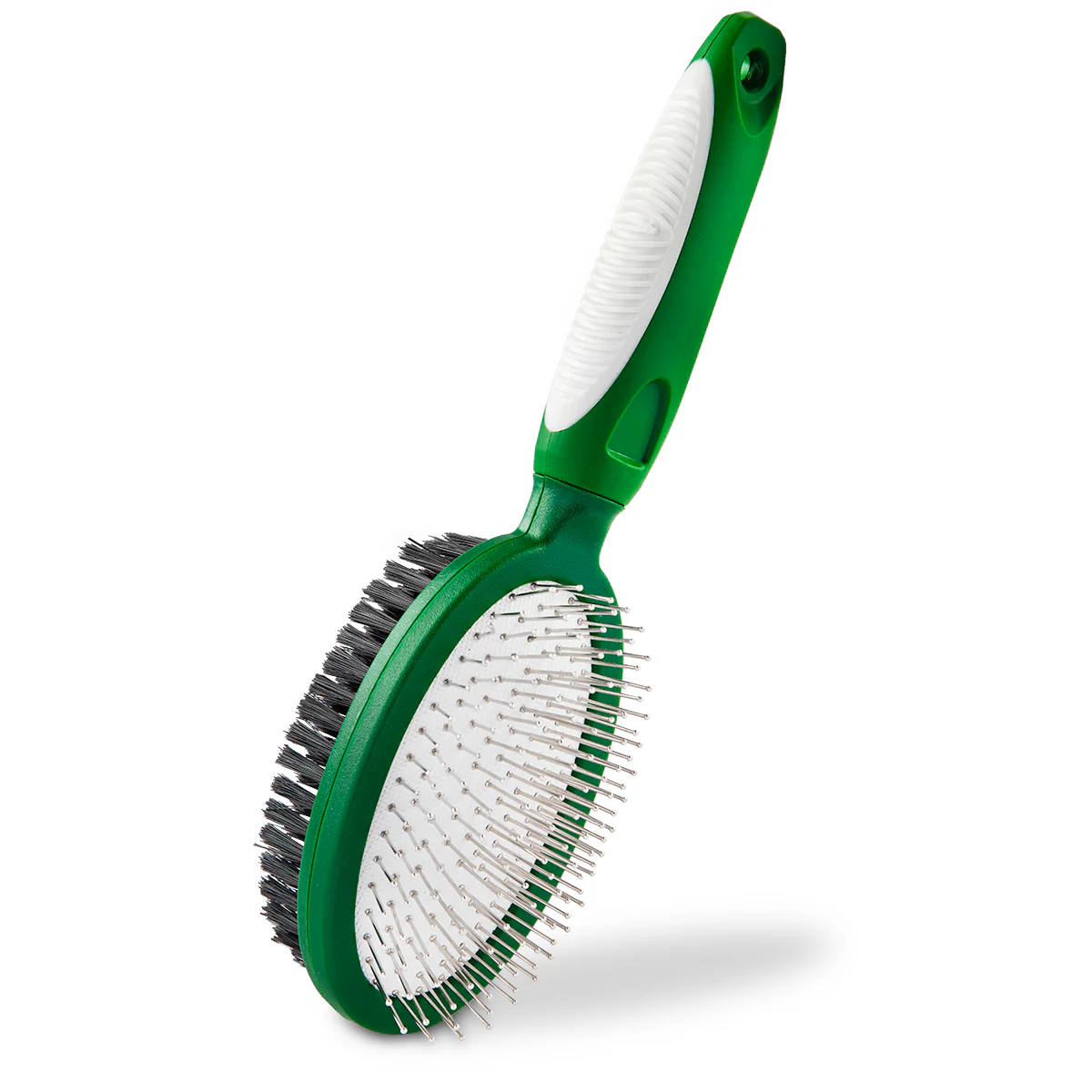 Especially for dogs with coarse or wooly coats, the brush's rounded pin side helps maintain your pet's natural, healthy oils and prevents tangles and mats. The bristle side keeps the coat shiny and smooth and is gentle enough for use on sensitive areas.