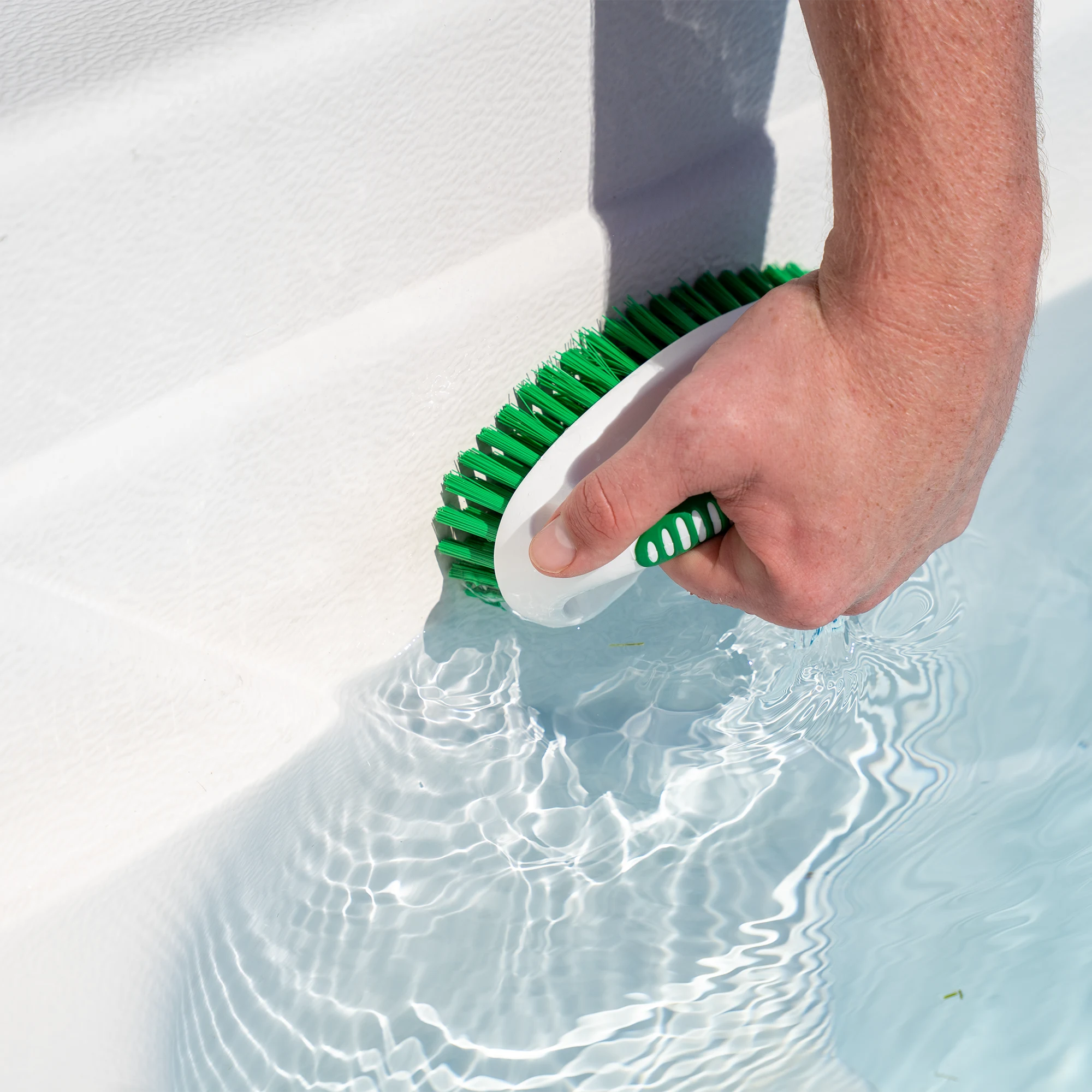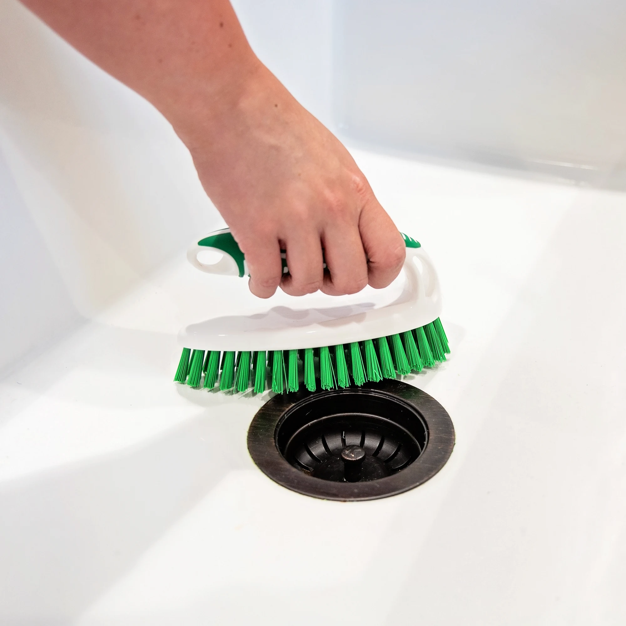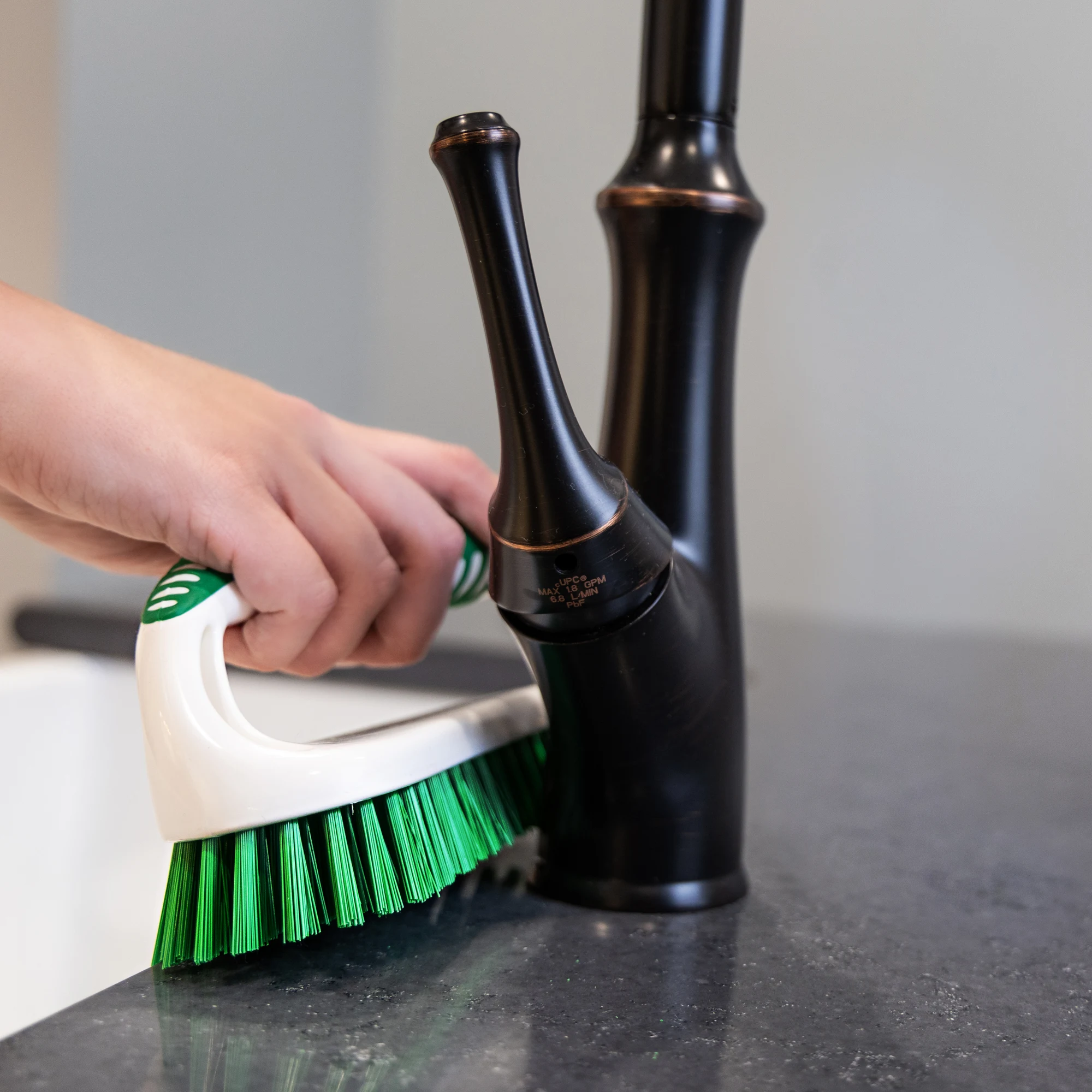 The Power Scrub Brush features a curved design that provides more scrubbing power to remove tough stains. The brush’s non-slip grip provides more control for cleaning all spaces.