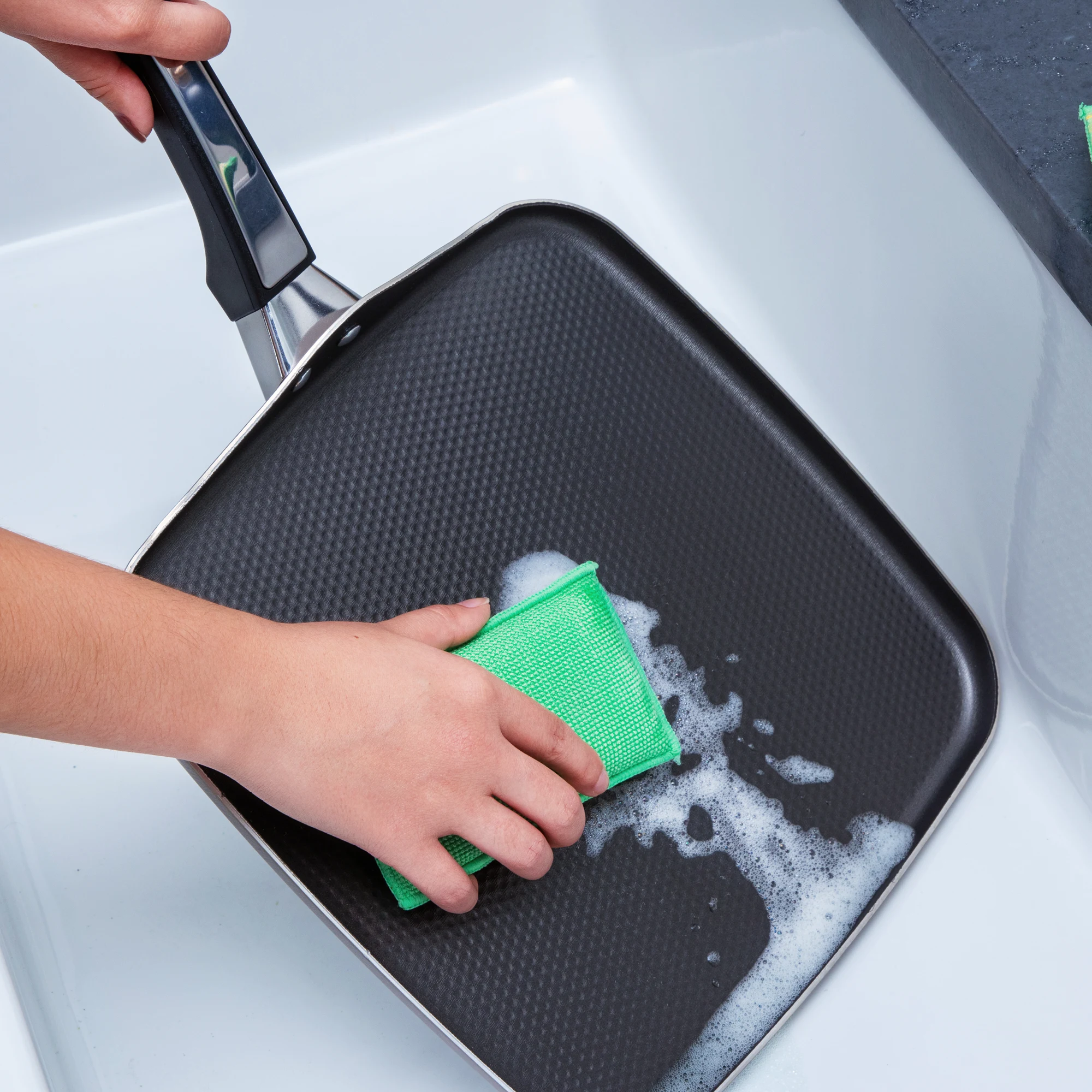Make cleaning your dishes even easier with the Power Scrub Dots Kitchen & Bath Sponge. The 2-in-1 design removes tough, stuck-on food with powerful scrubbing dots without scratching delicate surfaces, while the microfiber side wipes surfaces clean. Best of all, it rinses clean, removing stuck-on food particles.