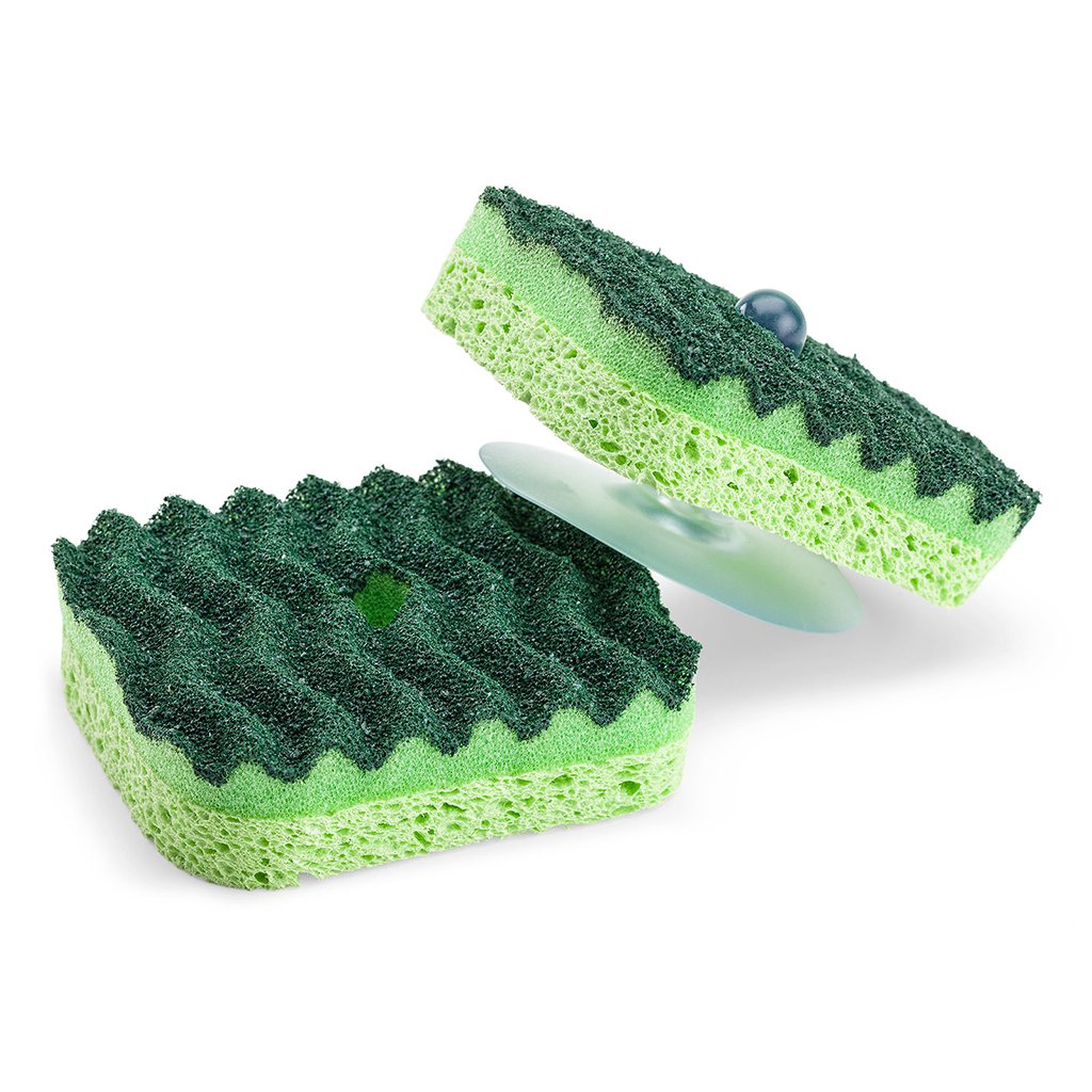 Keep your kitchen and sink more organized with the Libman Scrub Sponges with Suction Hanger. The scrub sponge itself features deep grooves designed to remove debris from different surfaces without getting clogged. The scrubbing surface powers through tough, stuck-on food while the sponge wipes surfaces clean quickly. The suction hanger sticks securely to any smooth surface and allows you to store the sponge to dry thoroughly.