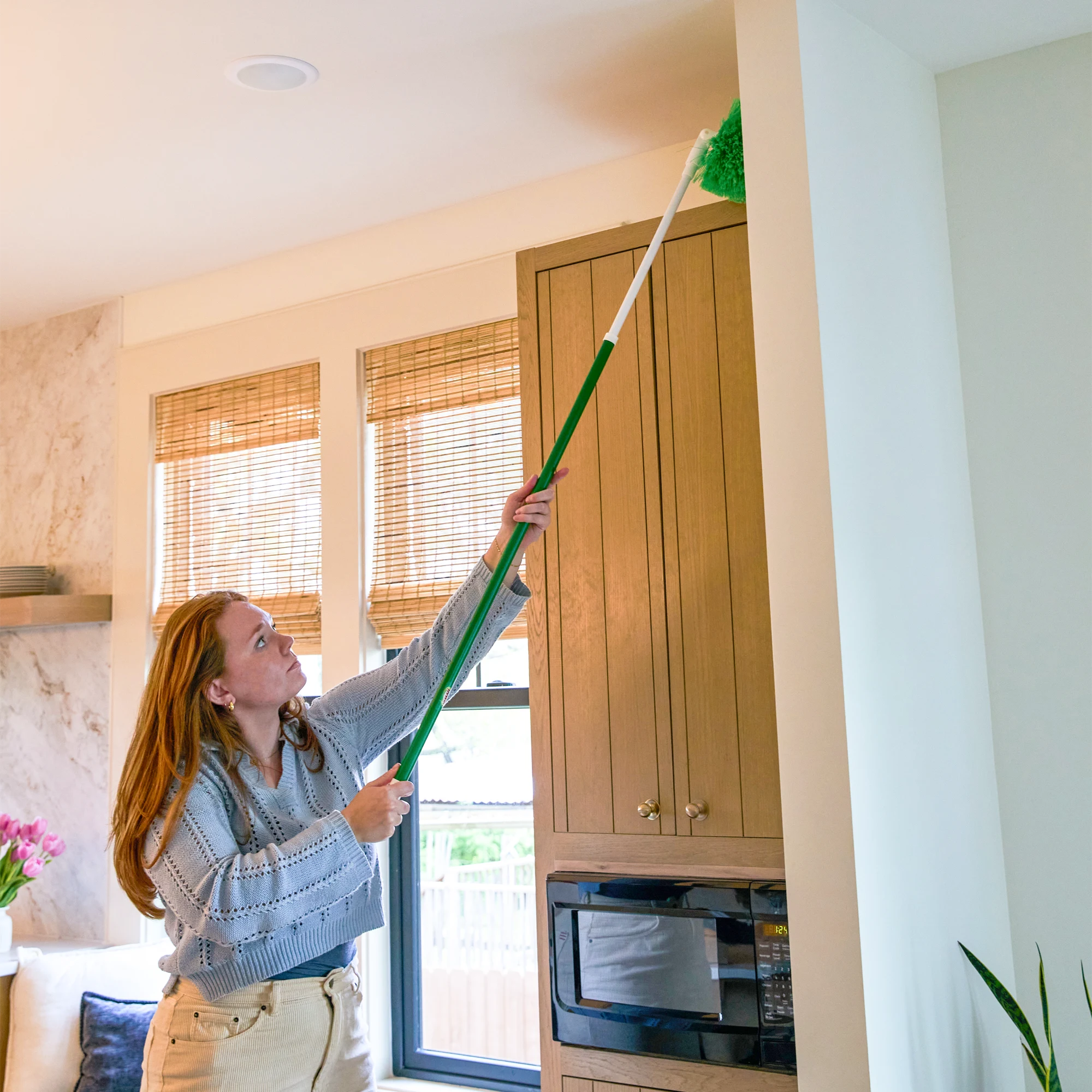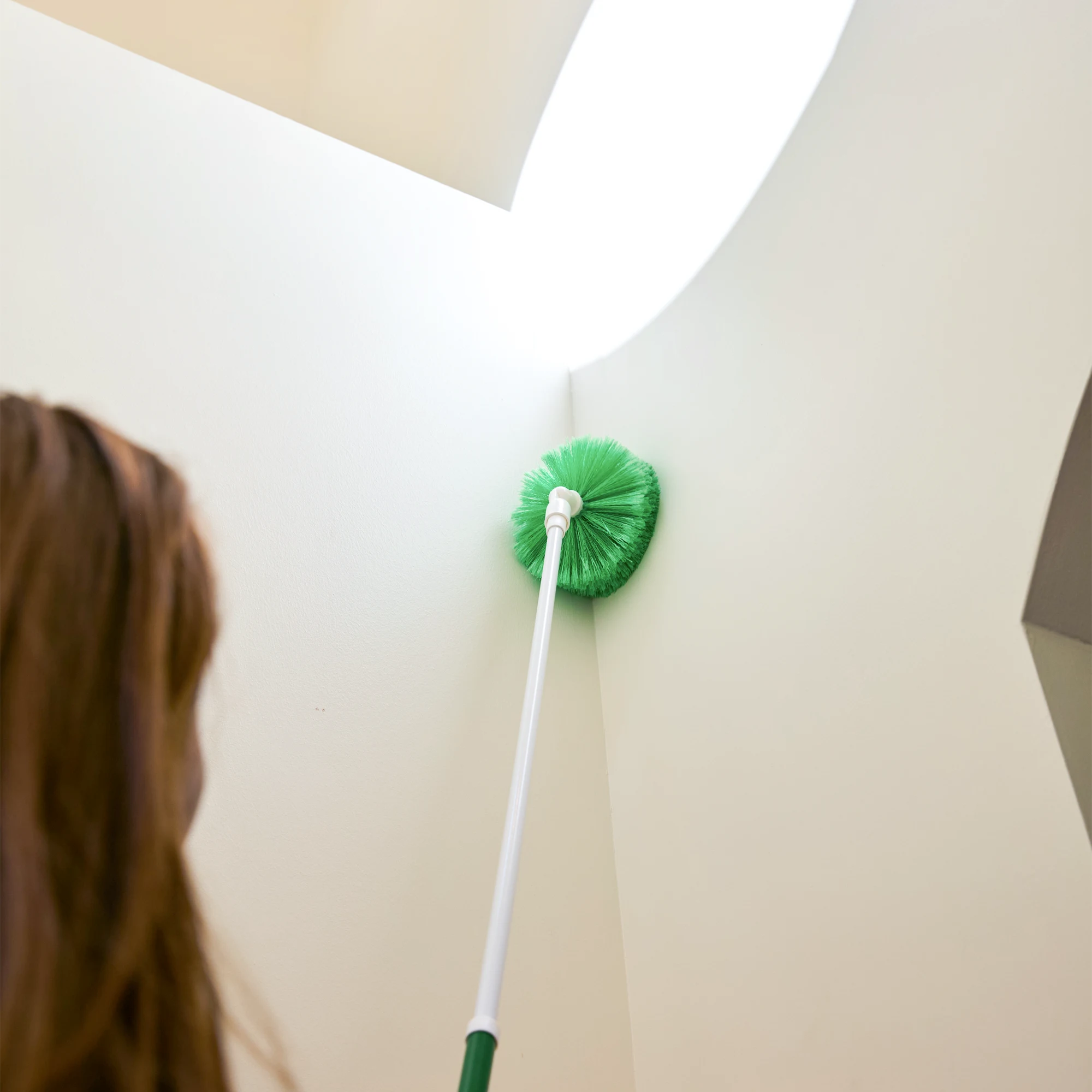 The Swivel Duster features electrostatic fibers made from recycled water bottles. Its pivoting head and extension capabilities help this duster easily catch dust, hair, and cobwebs.